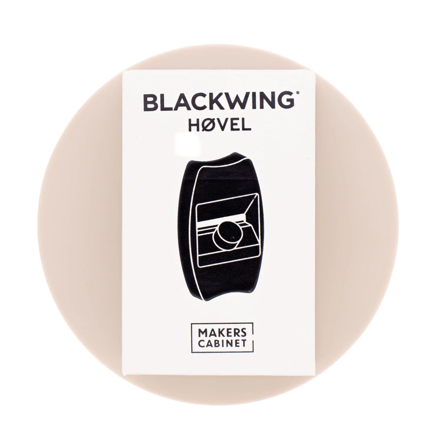 Blackwing Høvel è realizzato in alluminio anodizzato nero e include una base in legno nero abbinata. Nel set sono presenti 10 lame di ricambio in acciaio al carbonio.