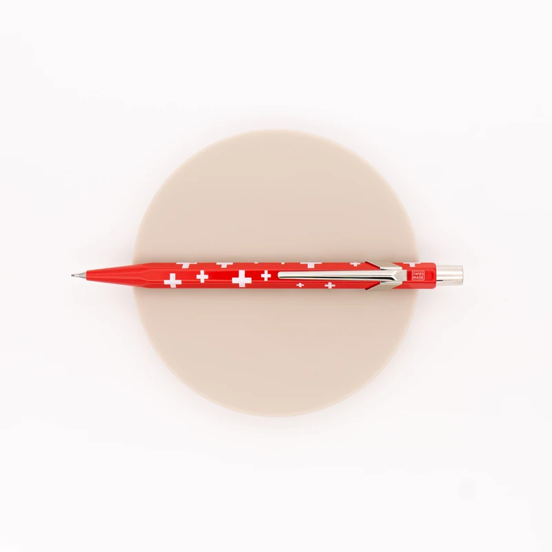 Totally Swiss è il colore rosso con il simbolo della bandiera Svizzera ed una mina da 0.7 mm. Dietro al tappo dove si aziona il meccanismo di fuoriuscita della mina è presente una gomma da cancellare.