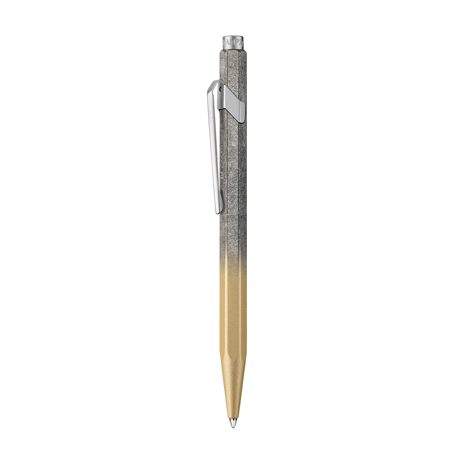 La penna a sfera Caran d’Ache 849 Cosmic Blue Dorata ti invita a sognare mentre ti trasporta nel cuore del cosmo. Il corpo esagonale in alluminio presenta una laccatura dorata con sfumature grigie.