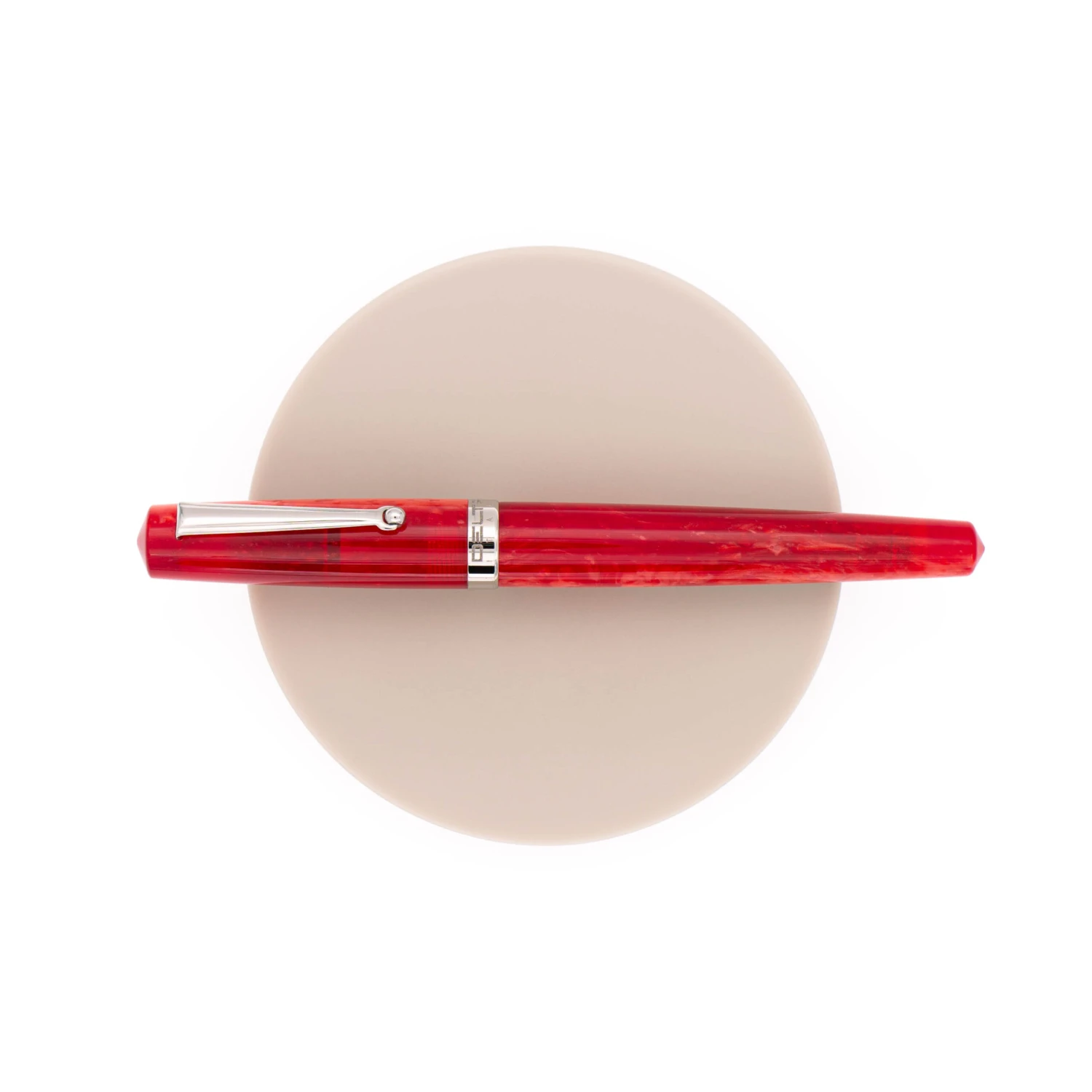 Delta Intesa 2.0 Rossa & Rodio è equipaggiata di un pennino in acciaio JoWo #6. Si ricarica con cartucce/converter ad attacco standard e presenta un anello sul cappuccio inciso con il nome della famosa azienda Italiana.