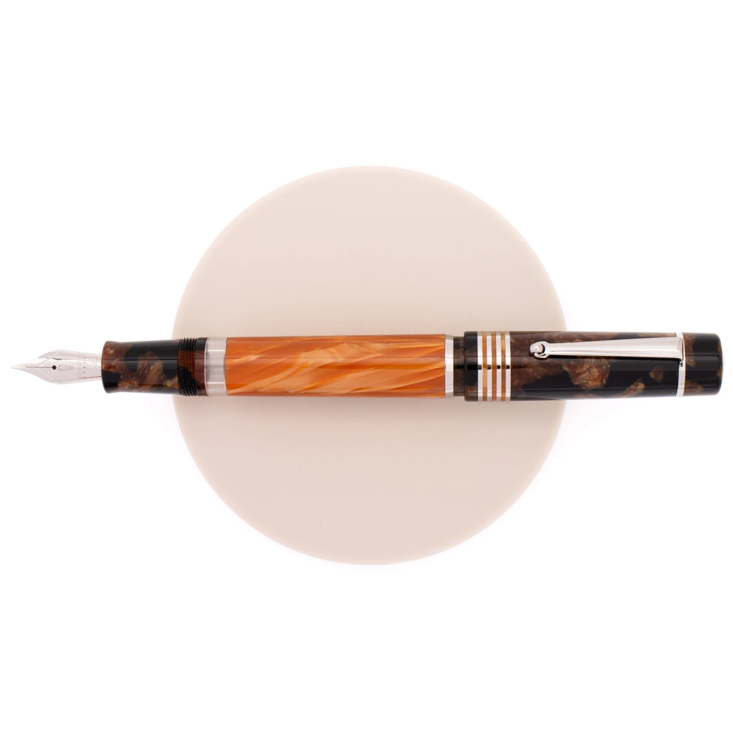 Il pennino in oro 14k, ornato da dettagli finemente incisi, completa questa creazione regale, offrendo una scrittura scorrevole e di estrema precisione. Il meccanismo a stantuffo, oltre a sottolineare l’artigianalità della penna, si abbina alla perfezione al design classico, rendendo omaggio all’equilibrio tra bellezza e funzionalità. Un vero gioiello che celebra il patrimonio culturale italiano, ideale per chi cerca non solo uno strumento di scrittura, ma un simbolo di prestigio e tradizione.