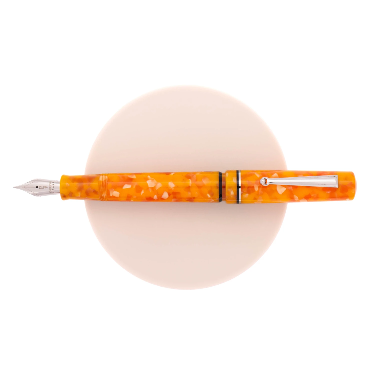 Delta Spaccanapoli Palazzo Doria D’Angri riprende l’iconico design della Dolcevita con un cappuccio rivisitato e caratterizzato da soli due anellini per un aspetto più semplice e contemporaneo. La penna stilografica presenta una resina arancione abbinata a finiture metalliche placcate palladio.