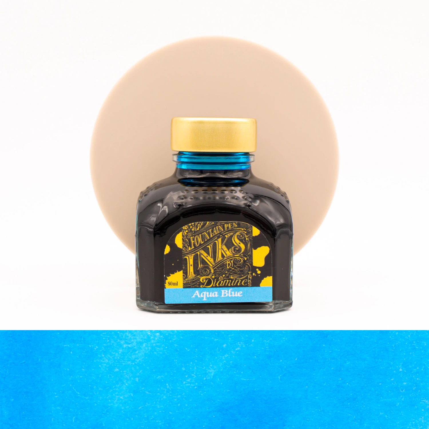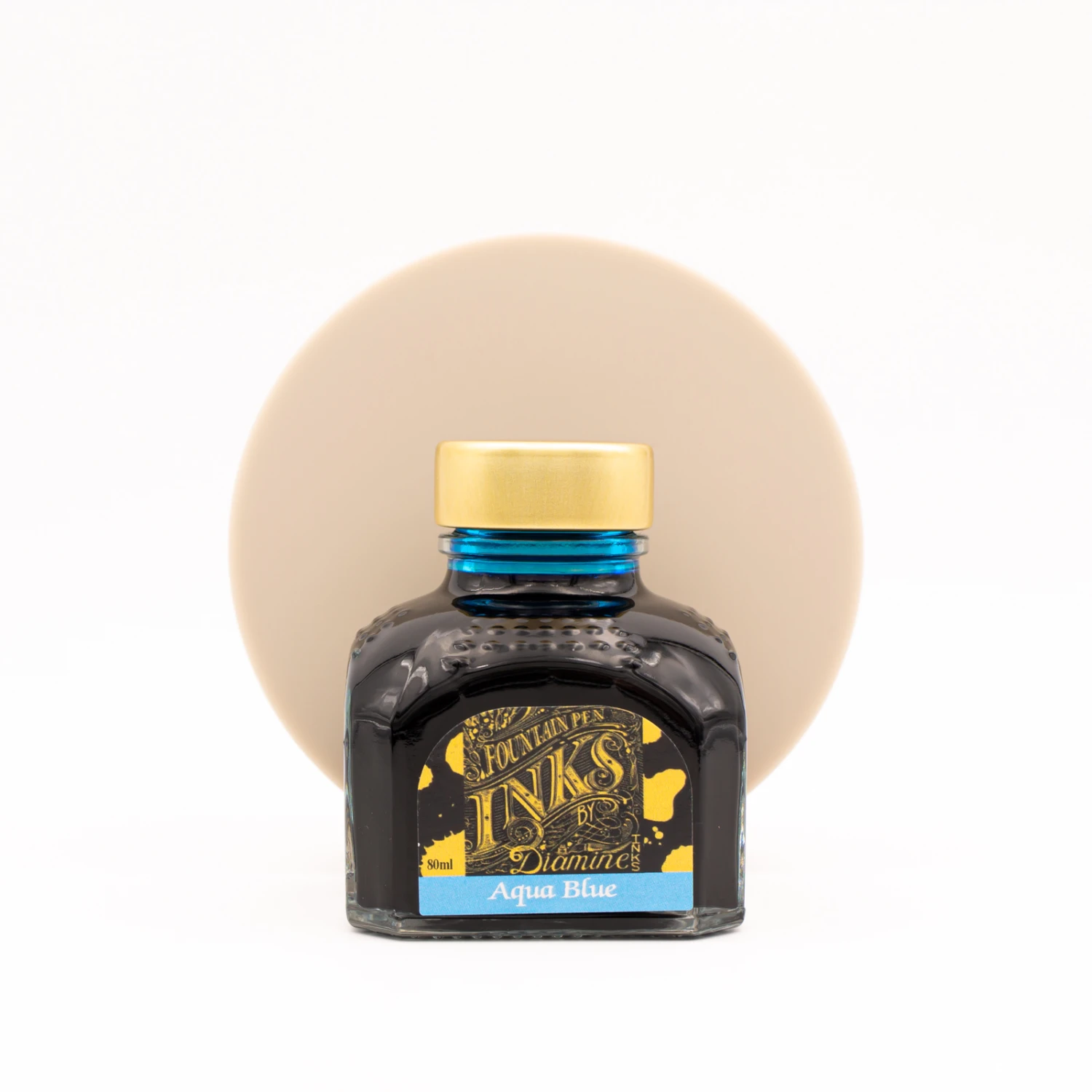 Diamine Aqua Blue nel formato 80 ml è contenuto in una bottiglia di vetro.