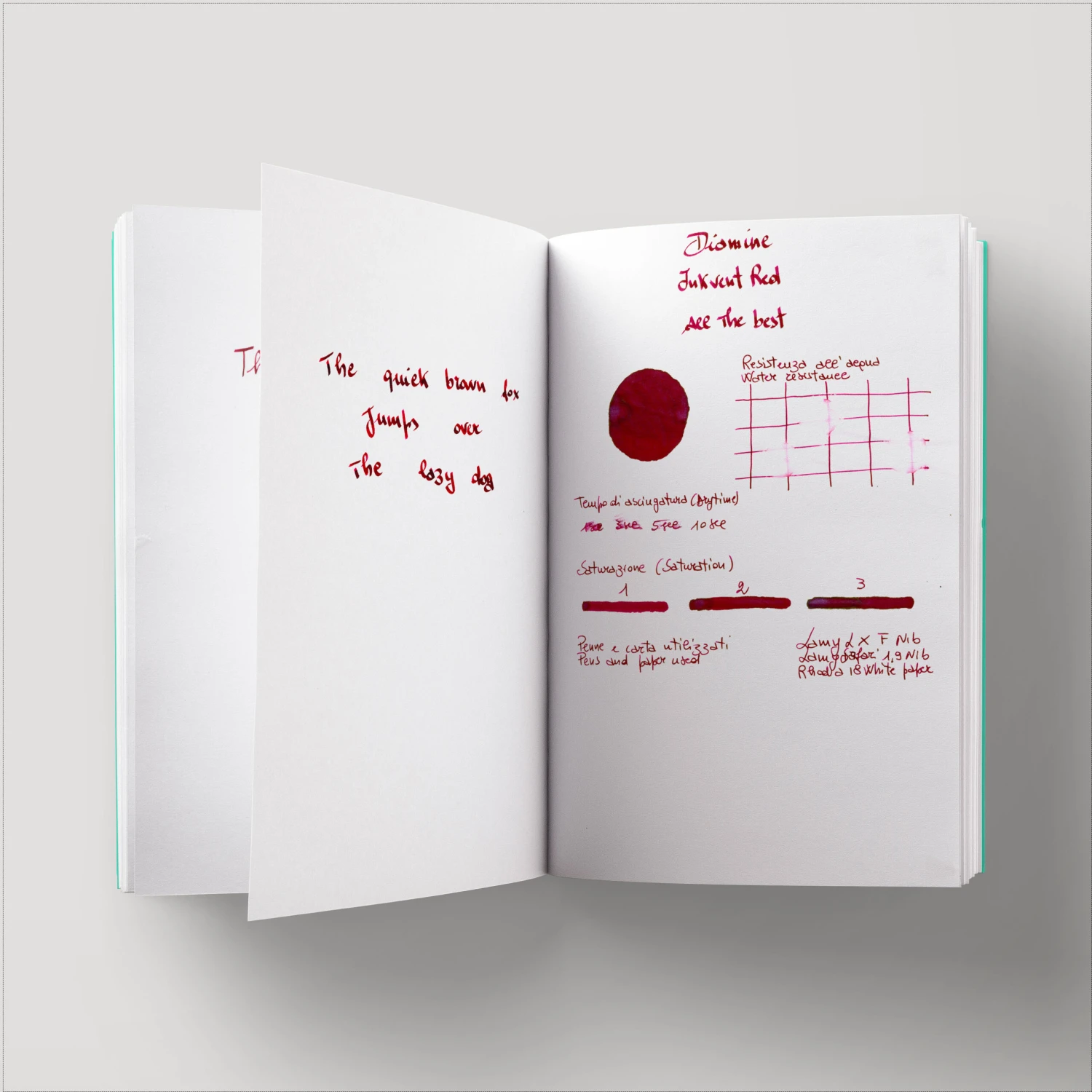 Troverai quattro diverse categorie di inchiostro nella collezione Diamine Inkvent Red Edition: Standard, Sheen, Shimmer and Sheen & Shimmer.