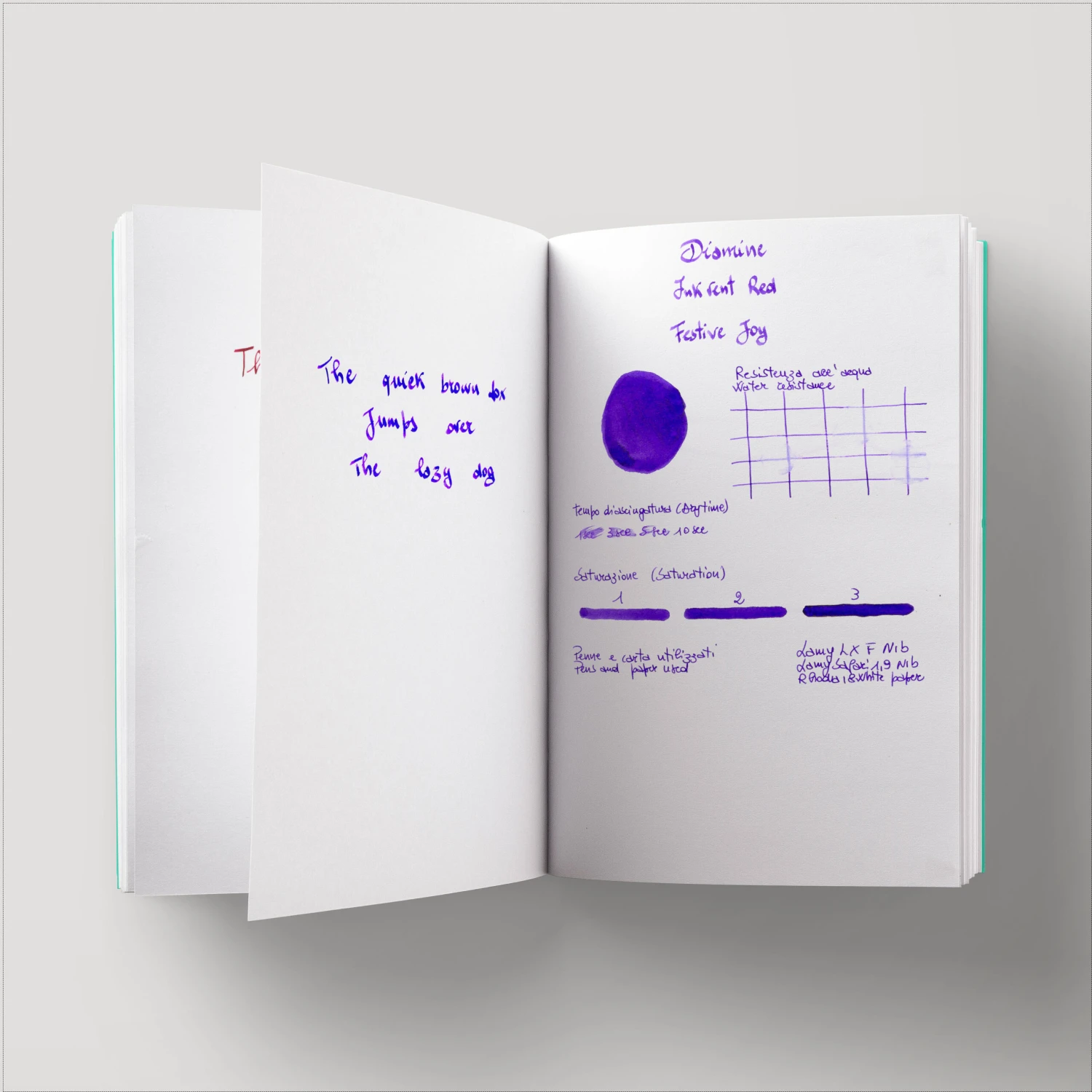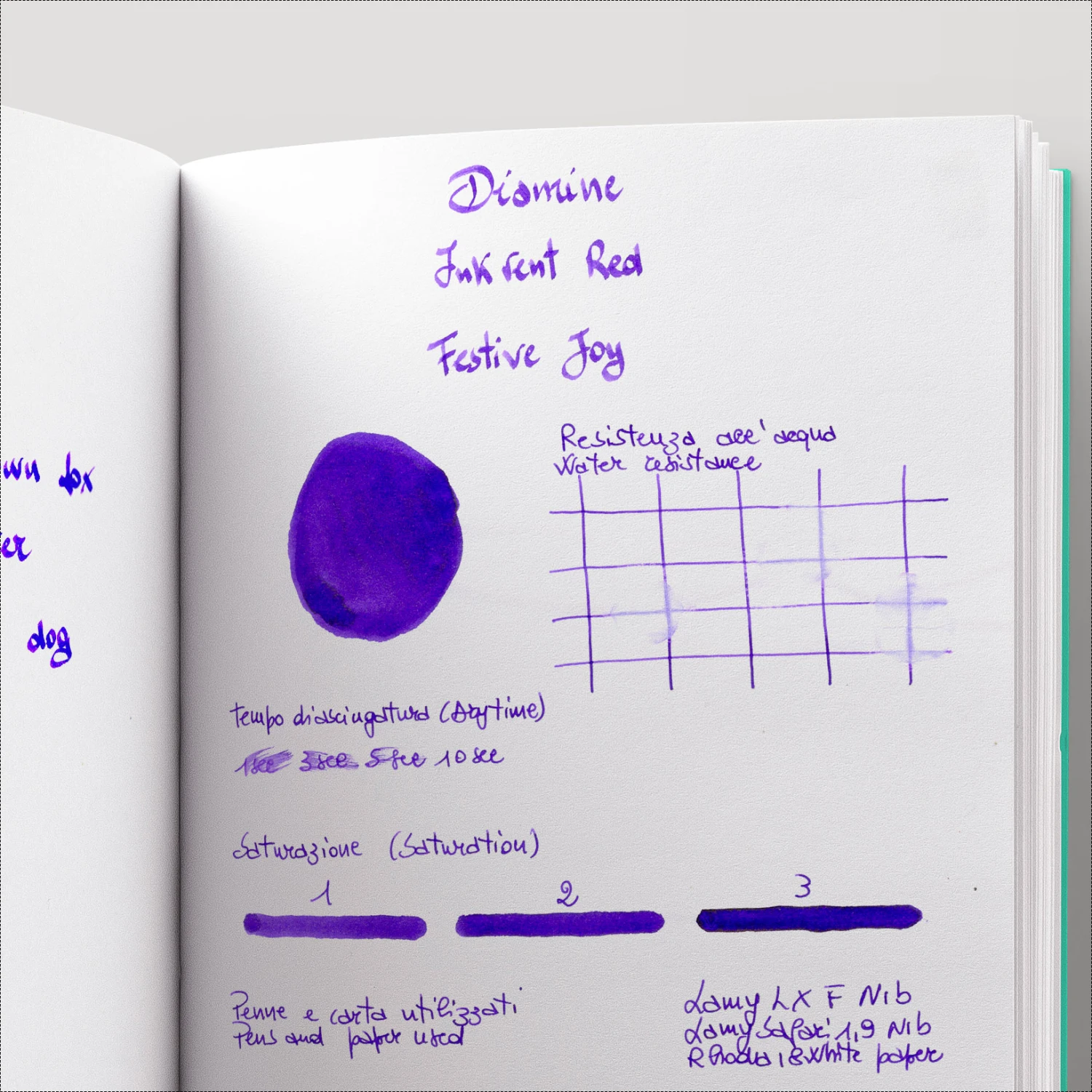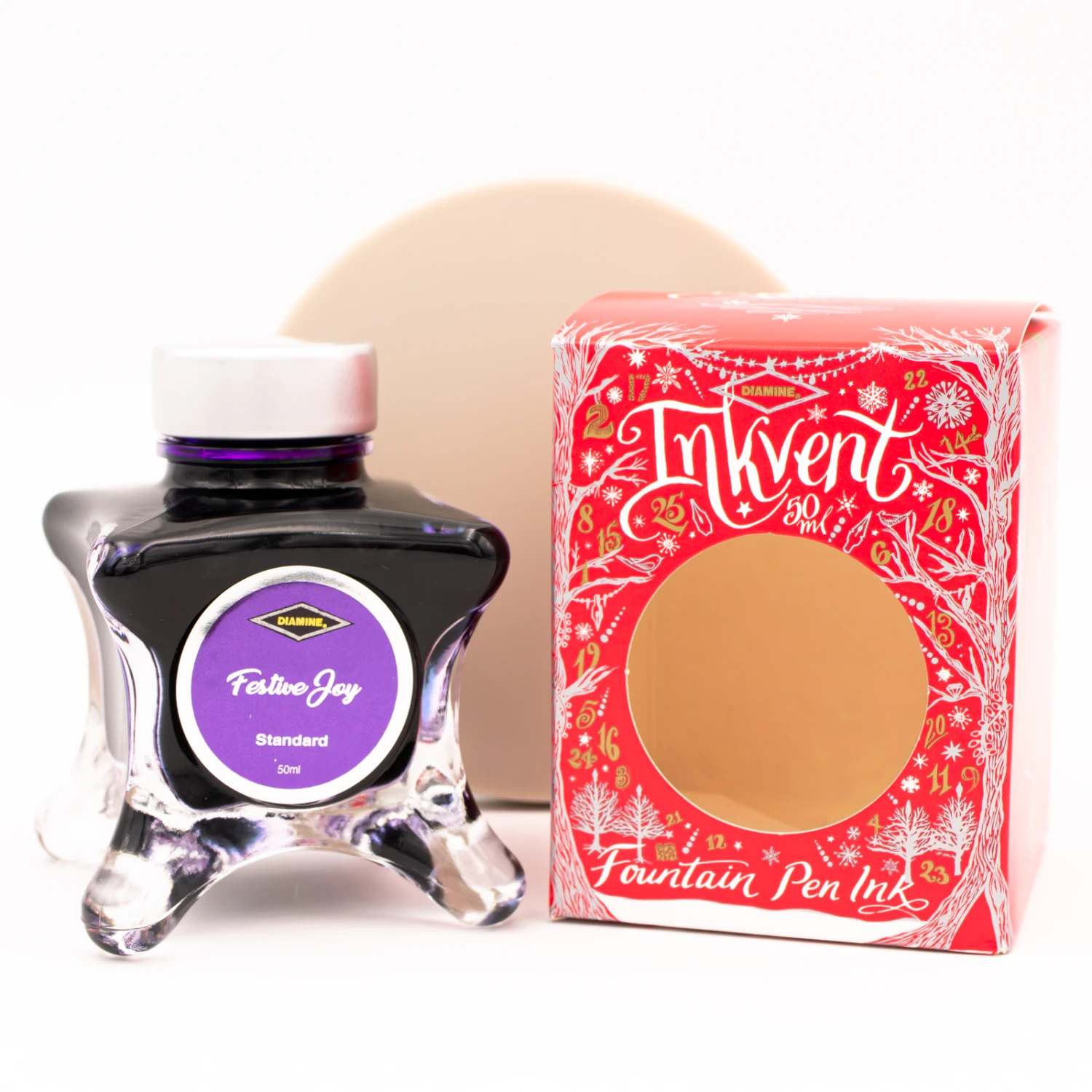 Diamine Inkvent Festive Joy è un inchiostro per penne stilografiche standard confezionato in una bottiglia di vetro da 50 ml.