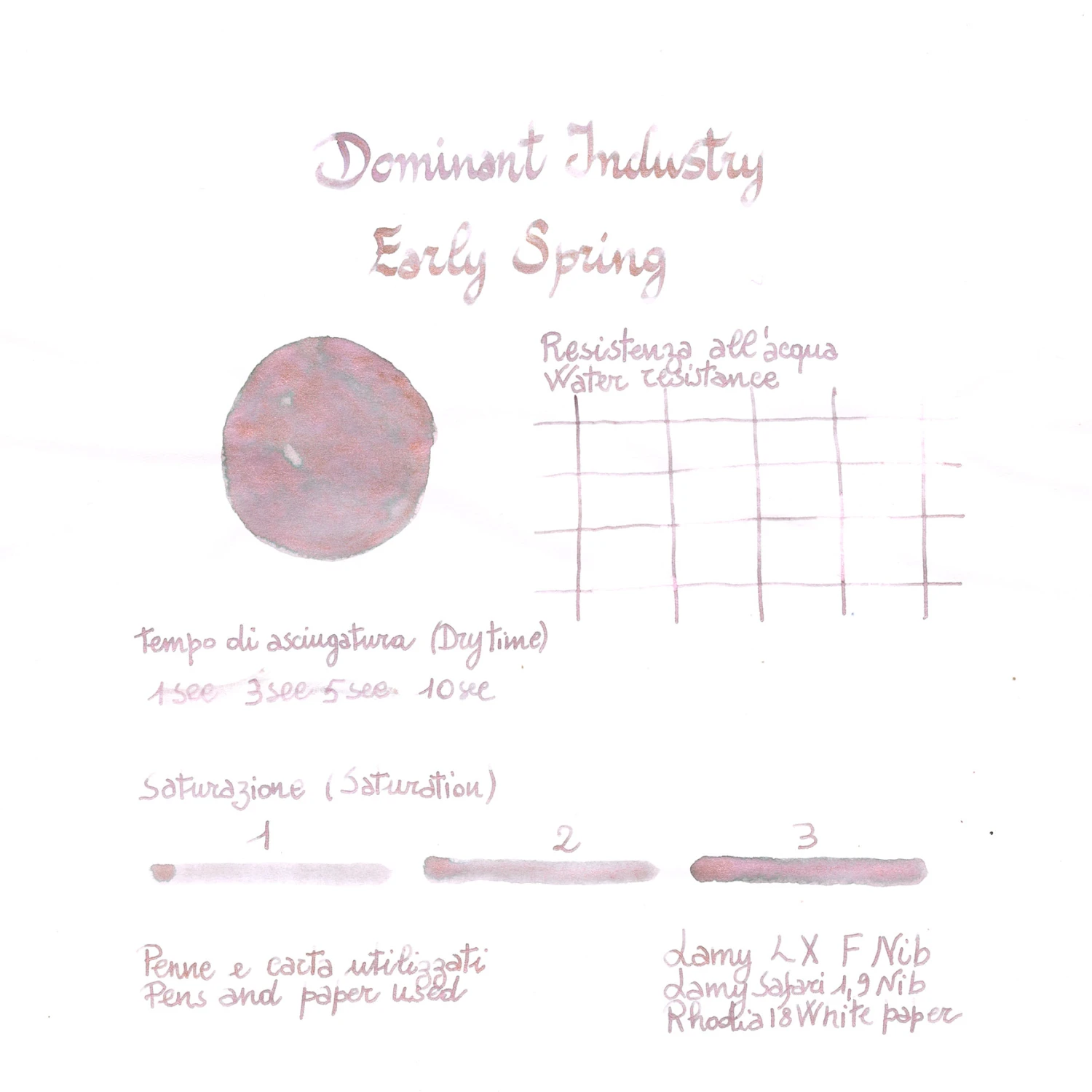 Dominant Industry Pearl Early Spring è un inchiostro per penne stilografiche con riflessi perlescenti contenuto in una bottiglia di vetro da 25 ml. Il packaging si completa con una dust bag ed una piccola pipetta.