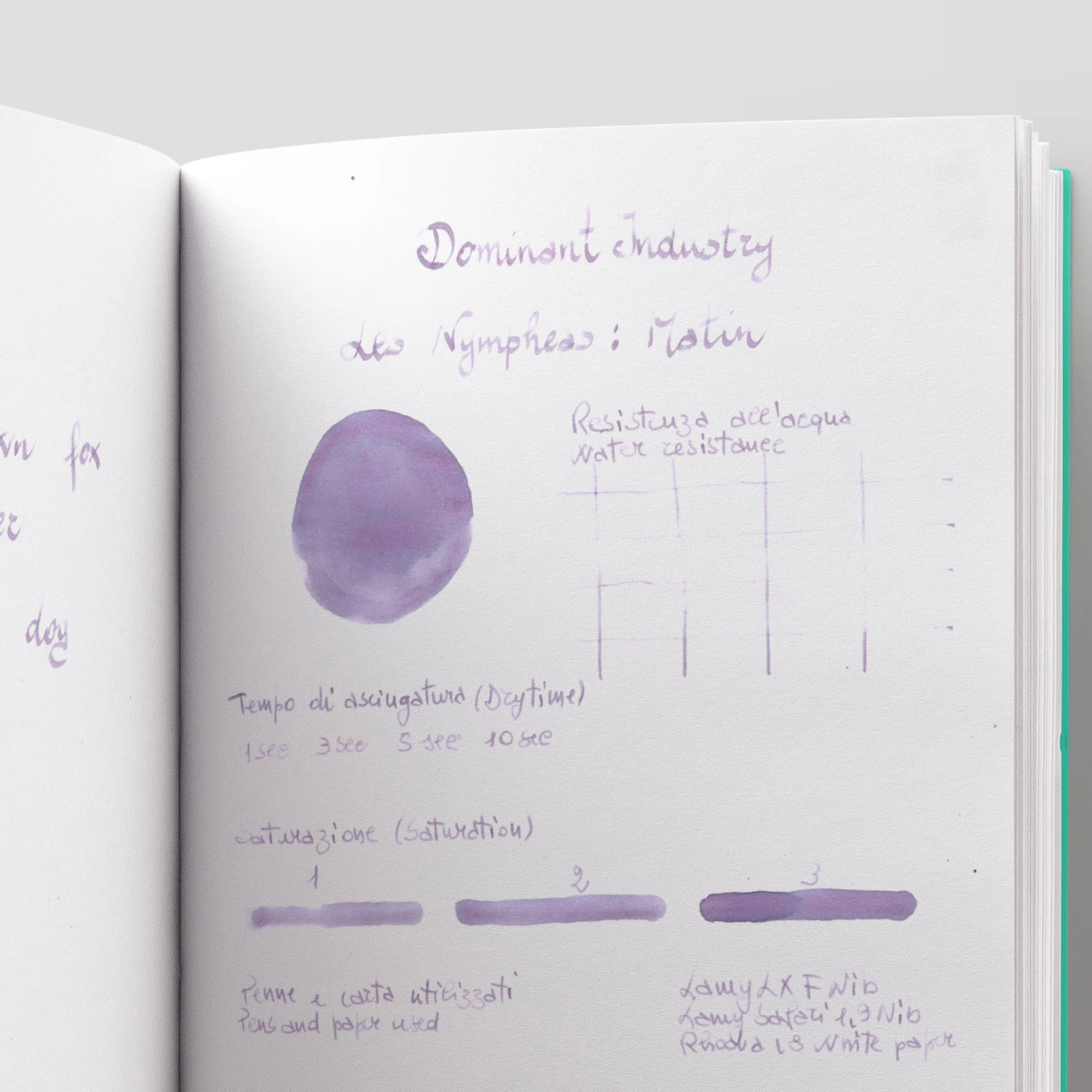 Dominant Industry Les Nympheas: Matin è un inchiostro per penne stilografiche shimmering della collezione Painter, una serie dedicata ai grandi pittori. I primi due colori “Matin” (mattina) e “Les Nuages” (le nuvole) traggono ispirazione dalle ninfee dipinte dal pittore impressionista Claude Monet.