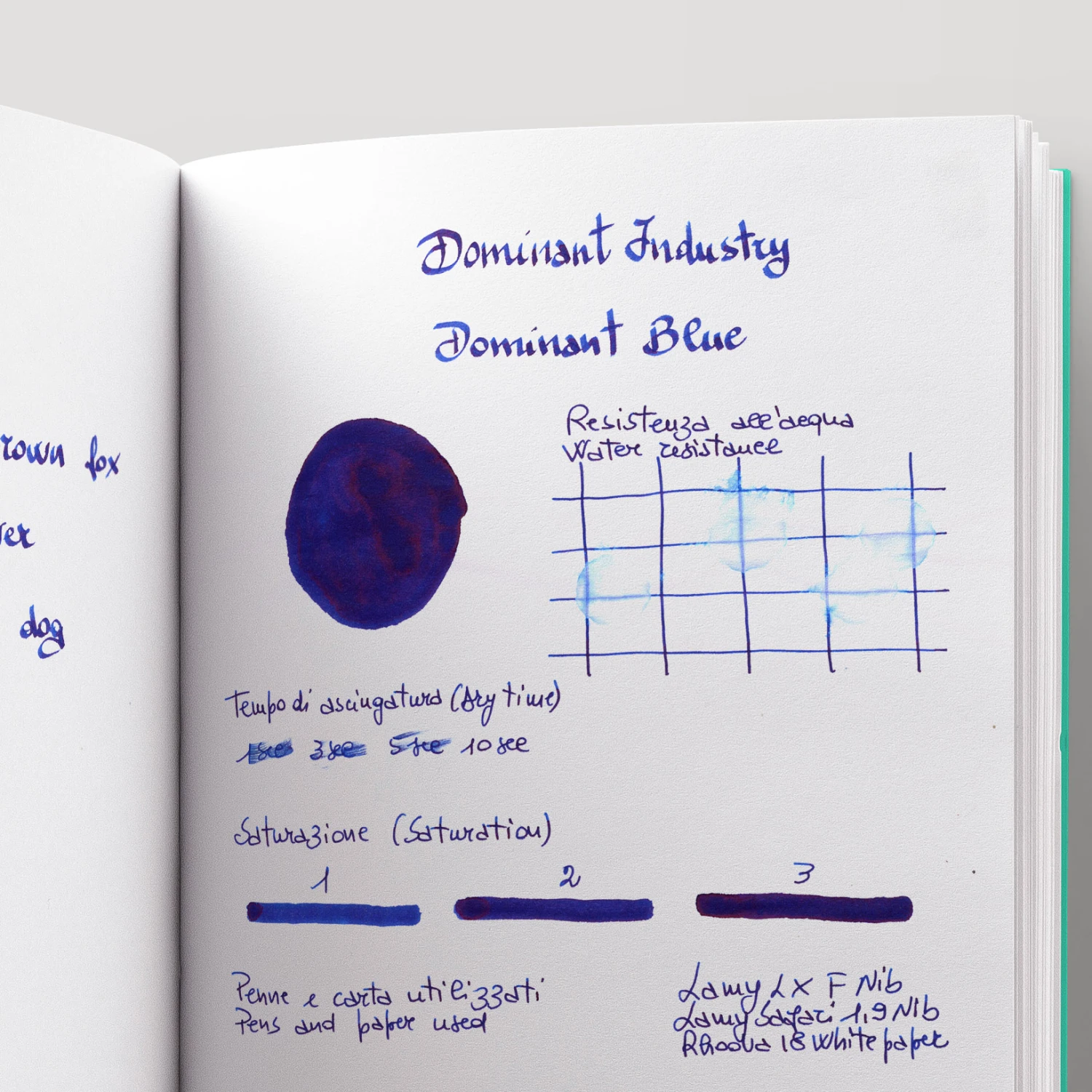 Dominant Industry Standard Dominant Blue è un inchiostro per penne stilografiche blu cobalto contenuto in una bottiglia di vetro da 25 ml. Il packaging si completa con una dust bag ed una piccola pipetta.