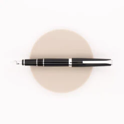 Esterbrook Estie Funky Lake è realizzata in resina acrilico marrone/rosso con una fascia blu su corpo e cappuccio. È equipaggiata di un pennino in acciaio JoWo #6 e si ricarica con cartucce/converter ad attacco standard.