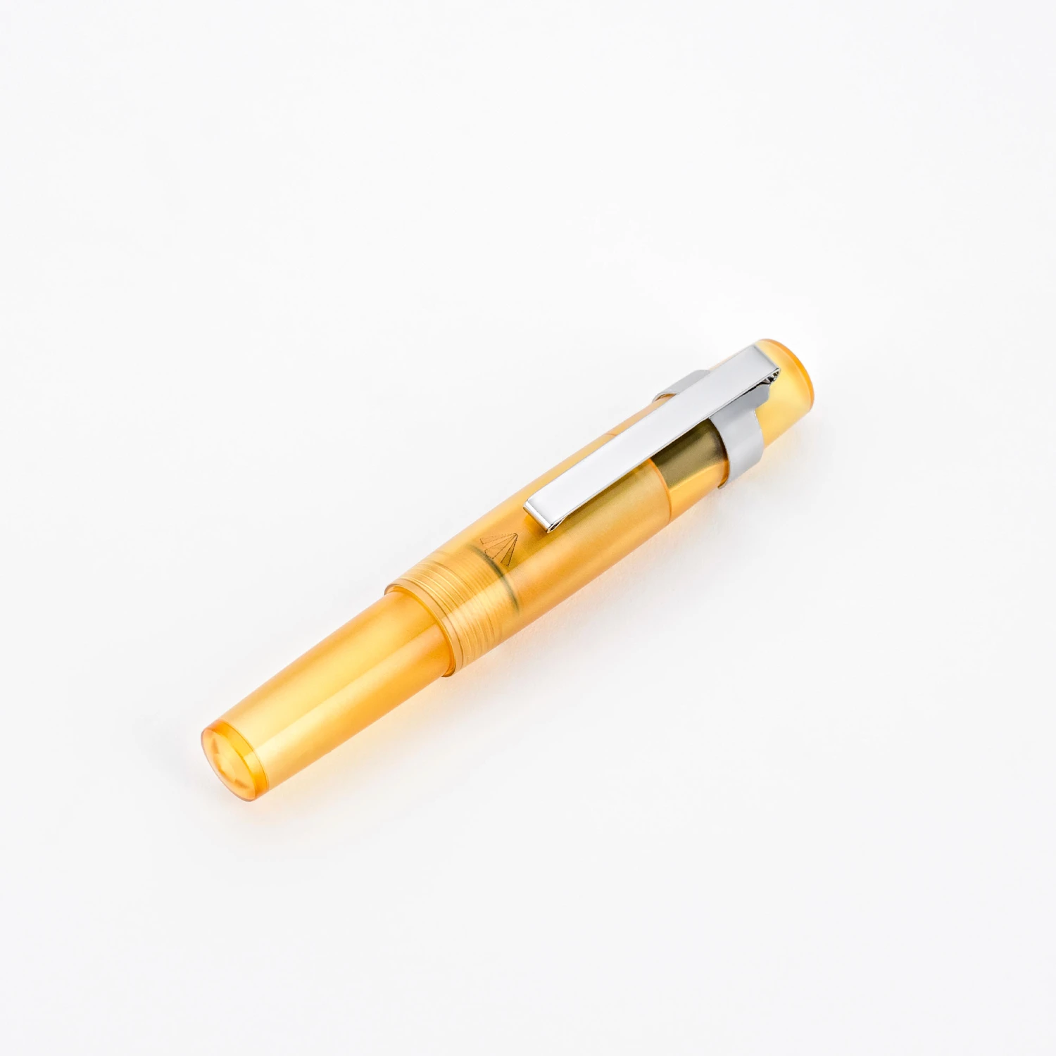 Gravitas Dinkey Ultem è equipaggiata di un pennino in acciaio progettato e prodotto da Gravitas e si ricarica con cartucce corte ad attacco standard. Vista la sua compatta dimensione, nessun converter è compatibile ma puoi inserire l’inchiostro con una pipetta direttamente nel corpo penna (eyedropper). Nella confezione è presente una clip removibile.