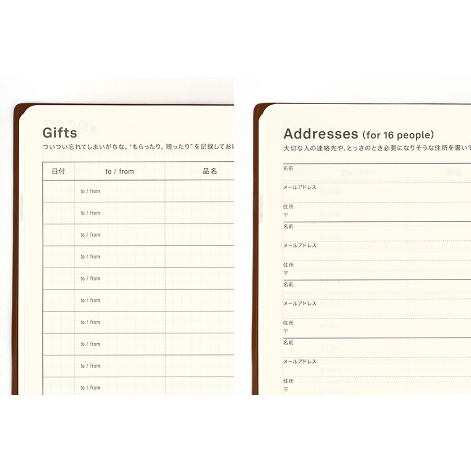 La carta è di un delicato colore crema che non affatica gli occhi e la stampa è grigio antracite per consentire alla scrittura di risaltare dalla pagina. Sul lato sinistro di ogni giorno c’è la data ed il giorno della settimana dei 5 anni. Poichè questa è la versione large dell’agenda Hobonichi 5 anni, sarai in grado di scrivere della tua vita quotidiana a tuo piacimento. C’è tanto spazio per registrare i tuoi cinque anni liberamente quanto vuoi, puoi scrivere usando una penna spessa o aggiungere disegni. La pagina di destra è una pagina vuota per tutto ciò che desideri, continuando le voci che non potresti inserire nella sinistra, annotando appunti che vorresti lasciare per il futuro, incollando elementi e altro ancora.