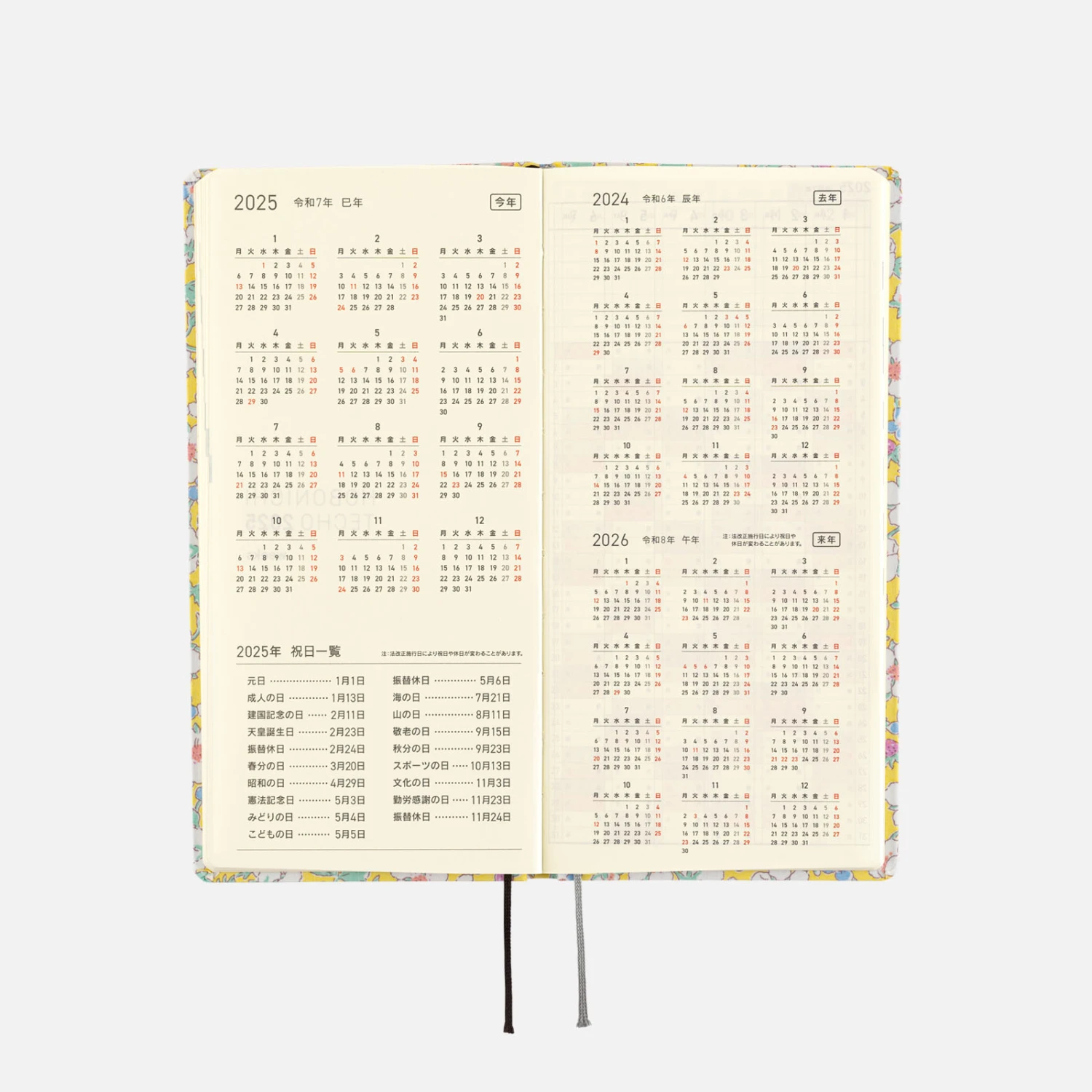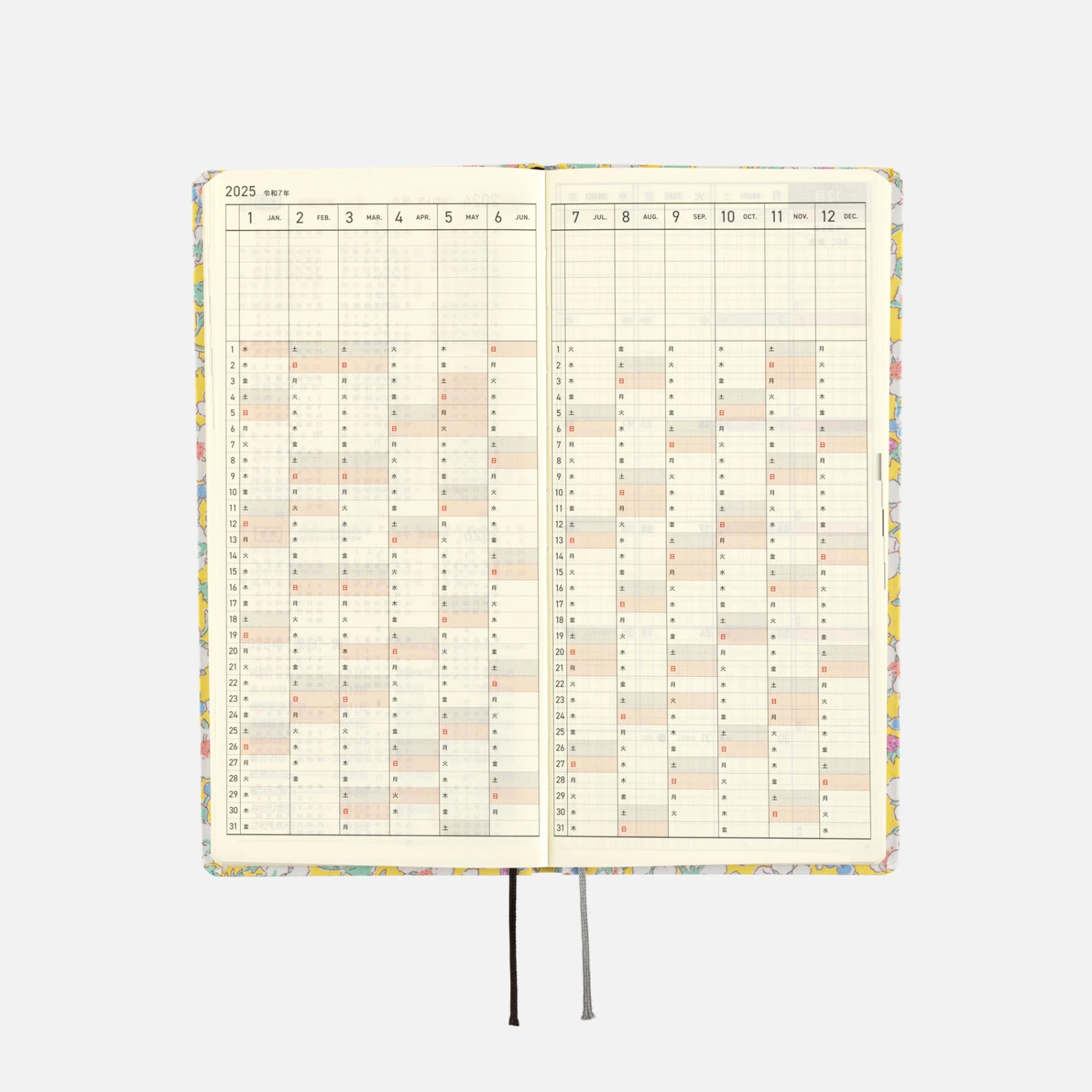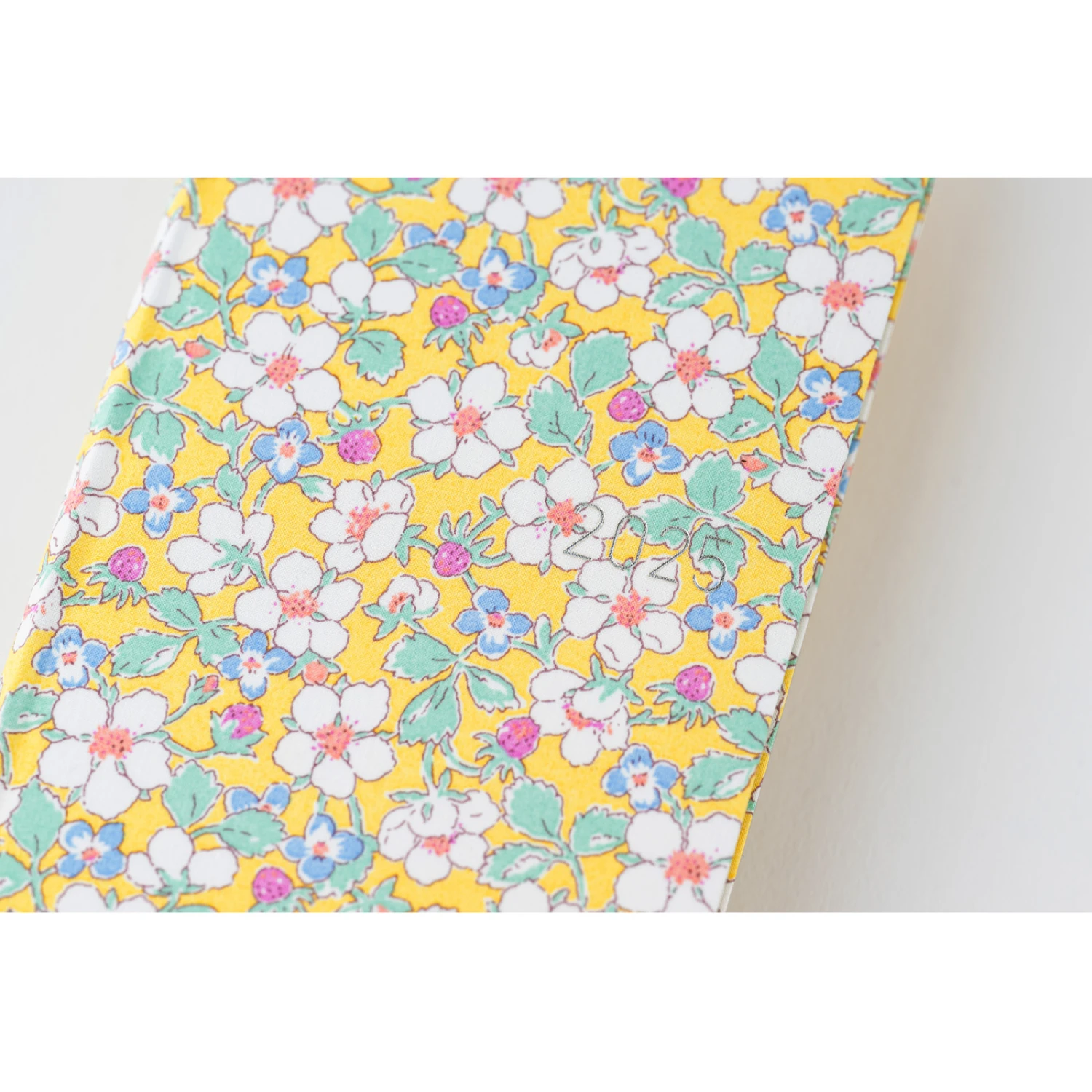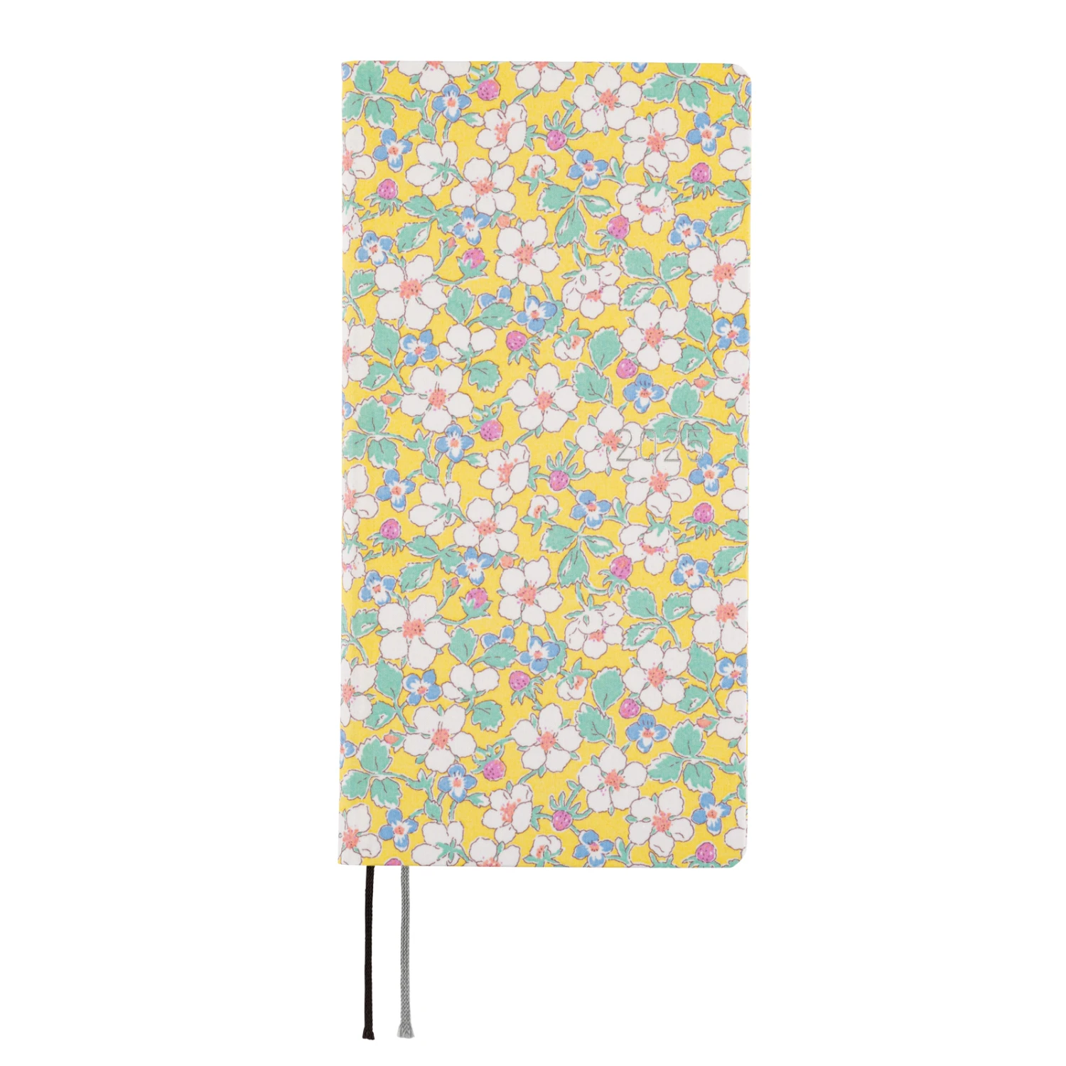 Questa agenda settimanale è realizzata con il materiale “Tana Lawn” di Liberty Fabric, un tessuto di cotone meticolosamente lavorato con una sensazione morbida e setosa che offre stampe in colori vivaci. L’anno 2025 stampato a caldo in argento è sulla copertina anteriore e sul dorso, e il nome Hobonichi sul retro. La copertina è stata realizzata come un libro con copertina rigida leggera ed ha un po’ di elasticità in modo che si pieghi leggermente.
