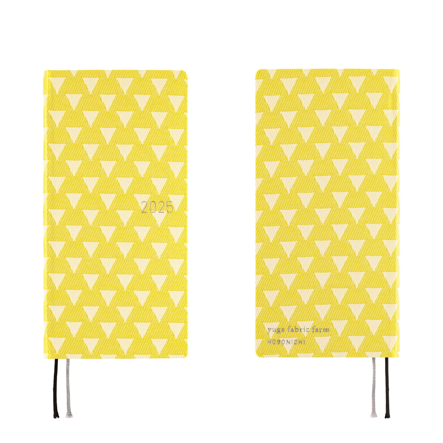 L’anno 2025 stampato in lamina d’argento sulla copertina e sul dorso del libro risplende alla luce. Il retro della copertina presenta il logo della Yuge Fabric Farm. Ti invitiamo a tessere insieme la tua storia con questa speciale copertina realizzata in materiale tradizionale.
