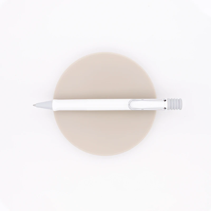 La penna sfera ha il corpo in resina bianca e il meccanismo a pressione. Viene fornita di refill con attacco proprietario M16.