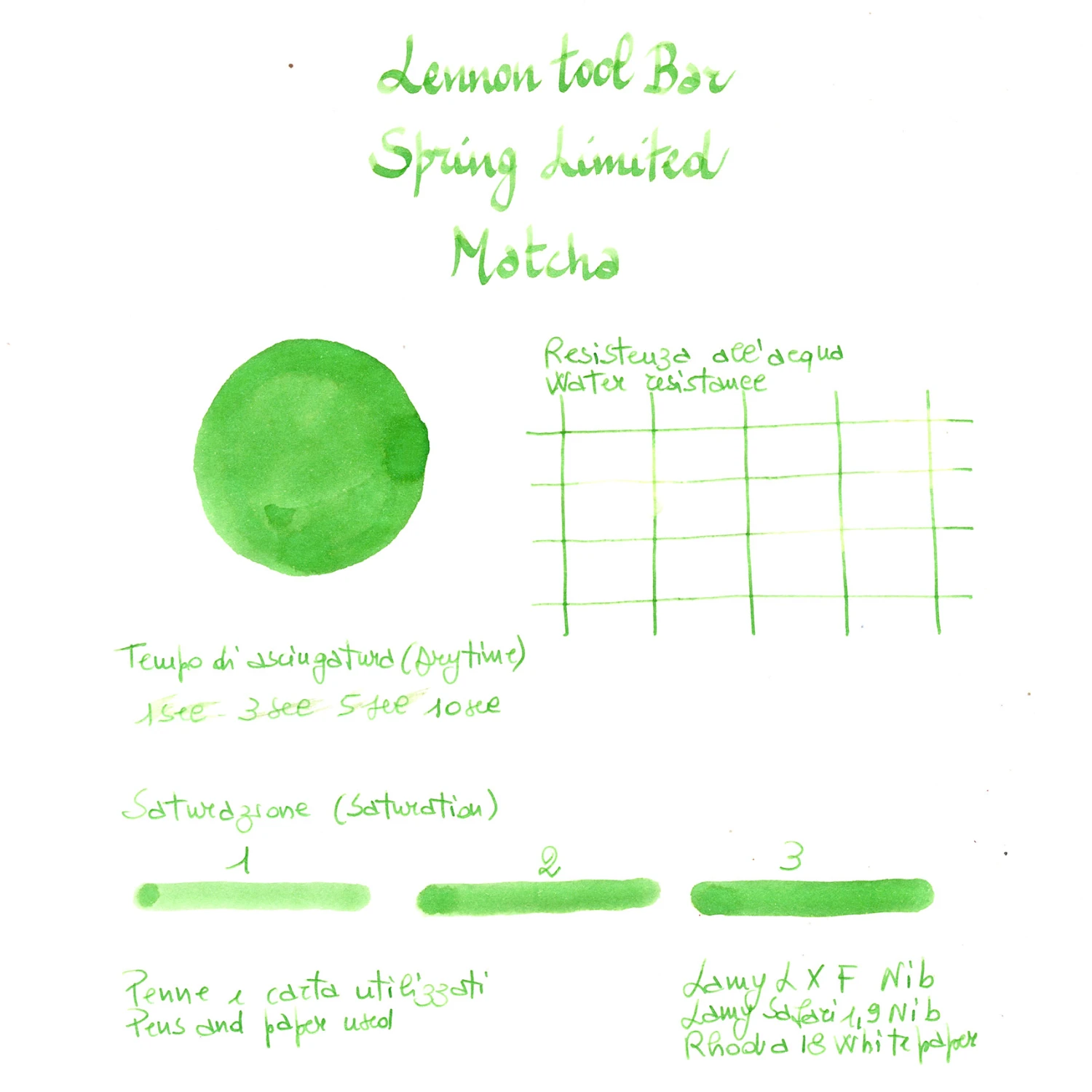La deliziosa polvere verde proveniente dall’oriente si trasforma gradualmente in un colore verde intenso e vibrante mentre viene sbattuta con una frusta da tè in bambù. Viene versato finemente nel latte bianco cremoso e ogni sorso di matcha mescolato con il latte porta un’immensa felicità. L’inchiostro Lennon Tool Bar Matcha trae ispirazione dal famoso tè orientale.