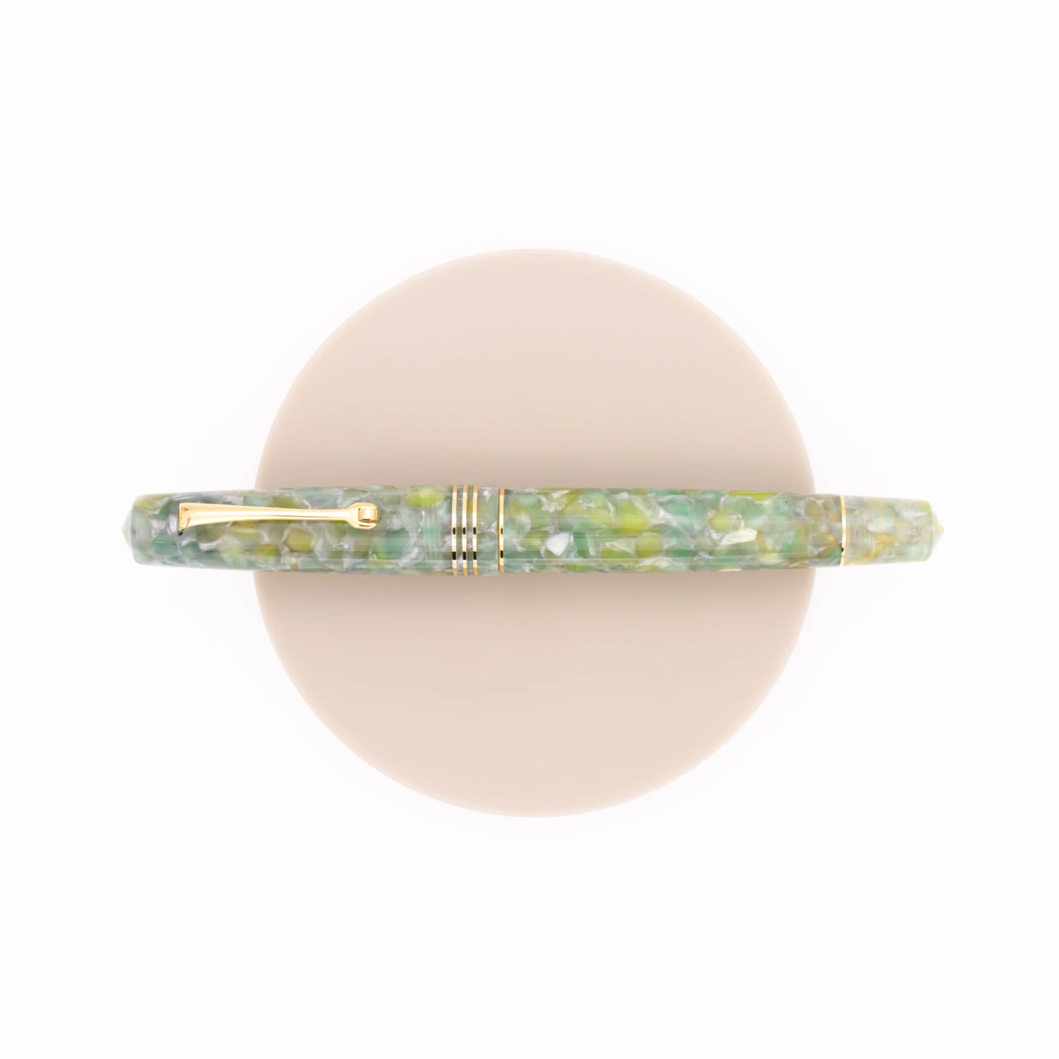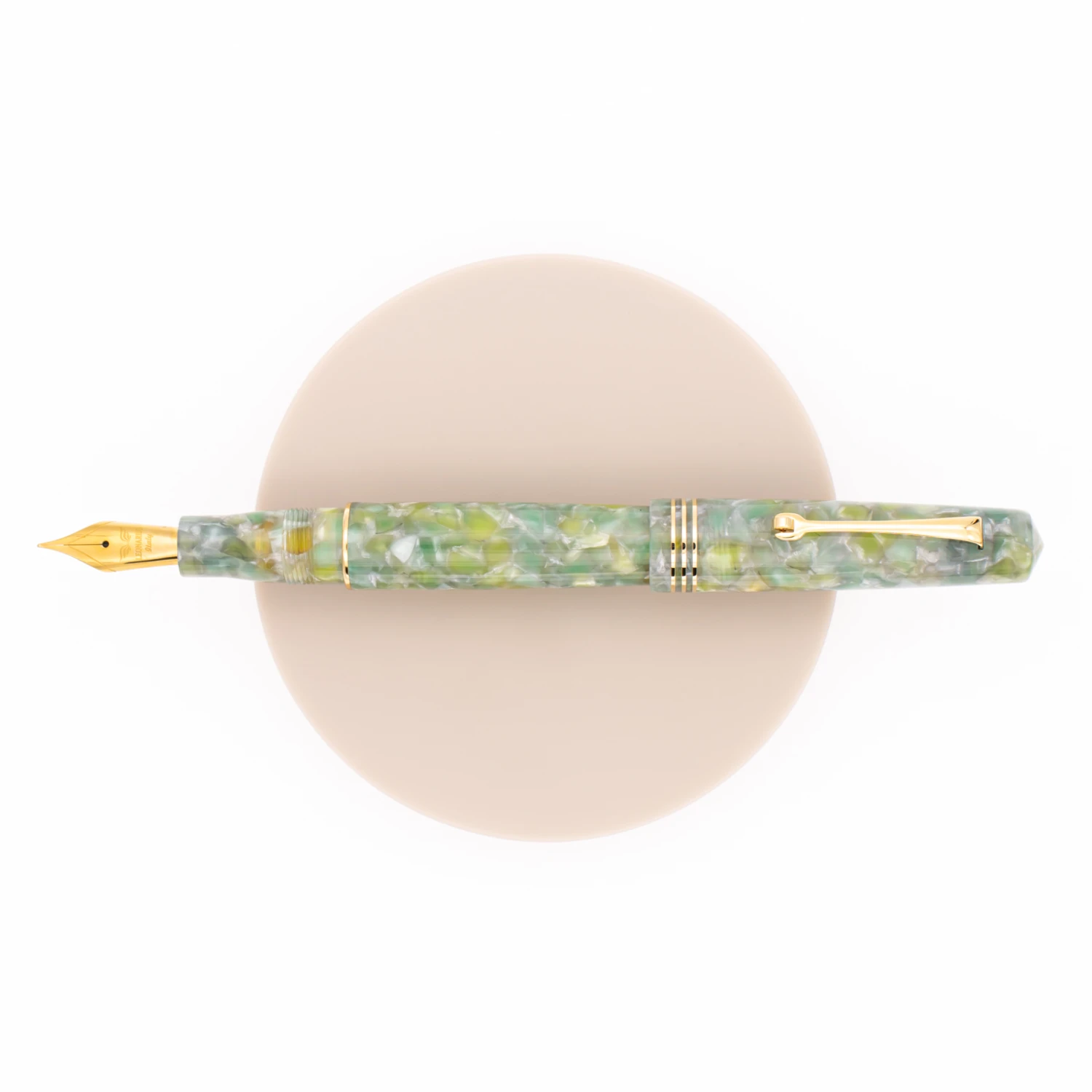 Leonardo Officina Italiana Momento Zero Giada & Oro è inspirata alla pietra verde Giada, simbolo di longevità e spesso usato come portafortuna. Pennino in acciaio e finiture dorate.