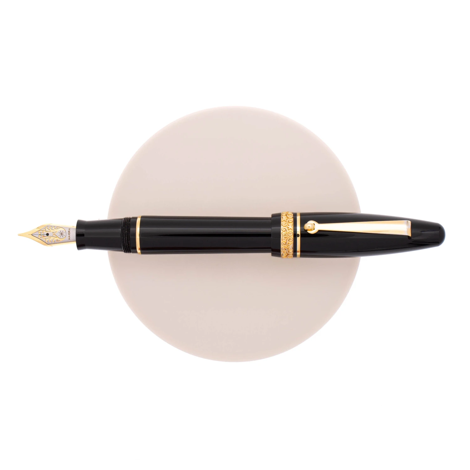 Maiora Ultra Ogiva Golden Age Nera & Oro è una penna stilografica realizzata in resina tornita a mano con un design dalla forma a sigaro accentuata che da il nome a questa stilografica. Presenta una combinazione di colori classici ed è equipaggiata di un pennino in acciaio inciso con la decorazione Maiora “The First”.