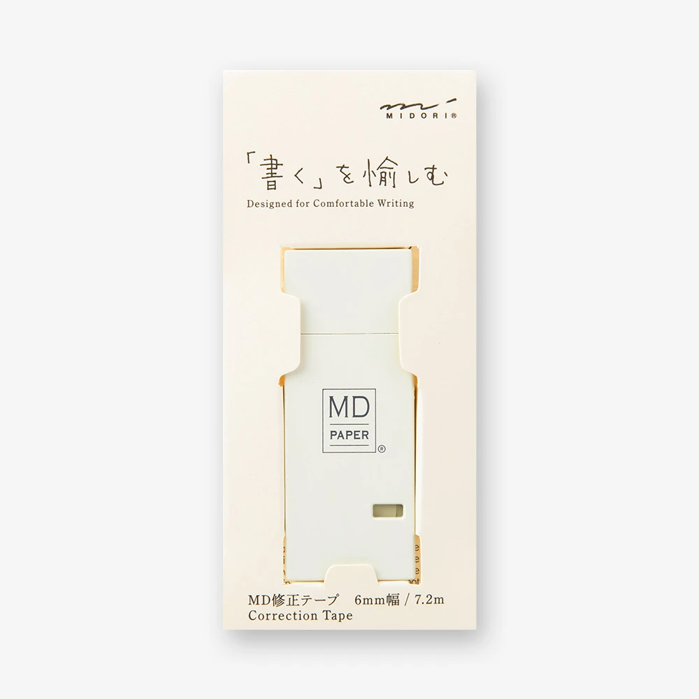 Il materiale cartaceo conferisce al correttore una piacevole sensazione satinata nelle mani, completamente diversa dalla normale scatola di plastica. Grazie al suo colore e trama simili alla carta MD, il nastro si fonde con la pagina come se i tuoi errori non fossero mai accaduti.