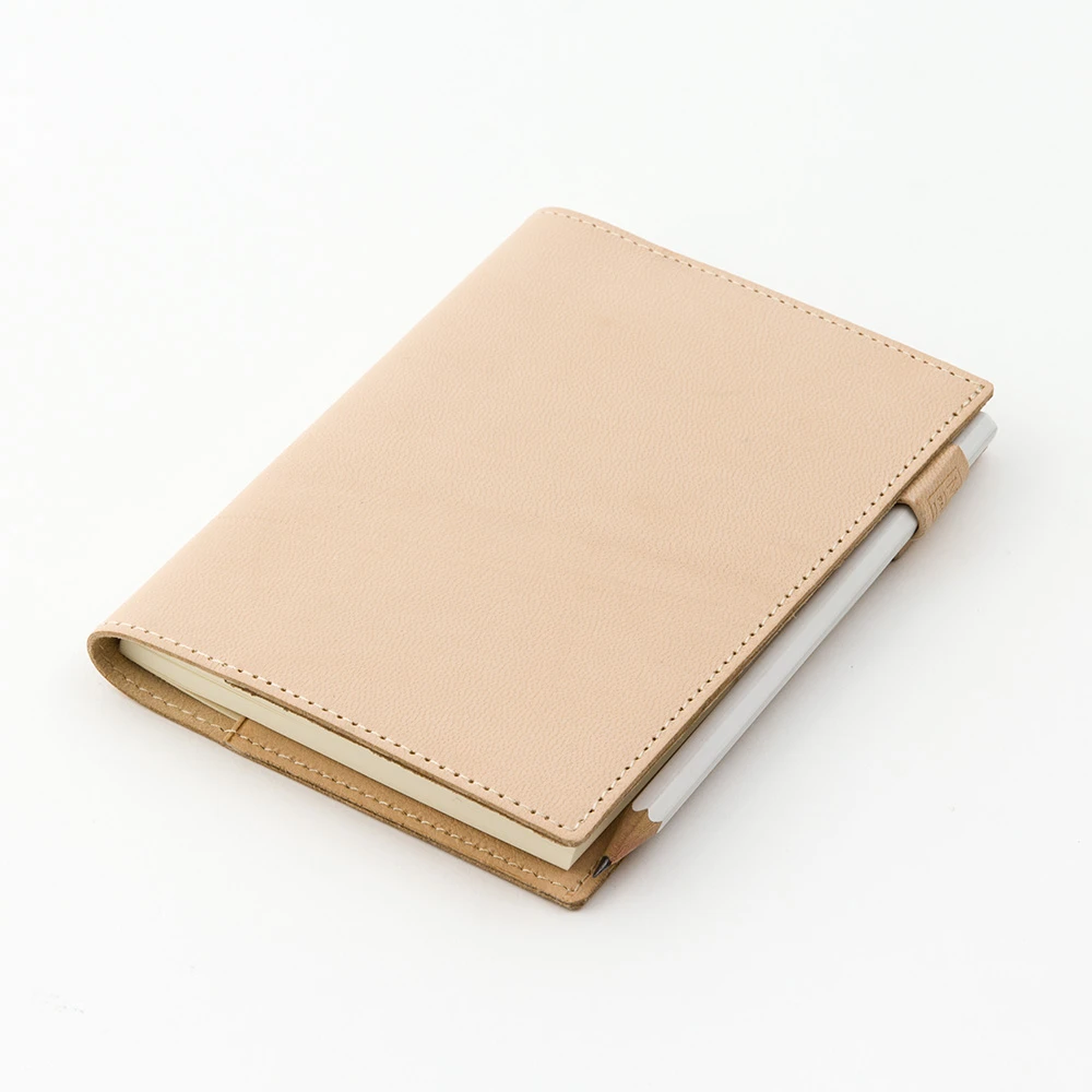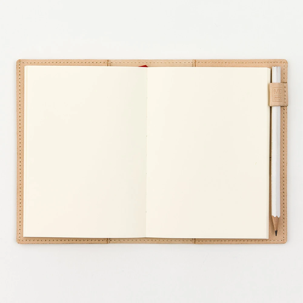 La pelle ha il suo colore naturale per un look semplice ed un carattere unico che prende consistenza e colore con l’utilizzo. Un portapenne è inserito all’interno della copertina, sul bordo in modo che non crei una protuberanza durante la scrittura.