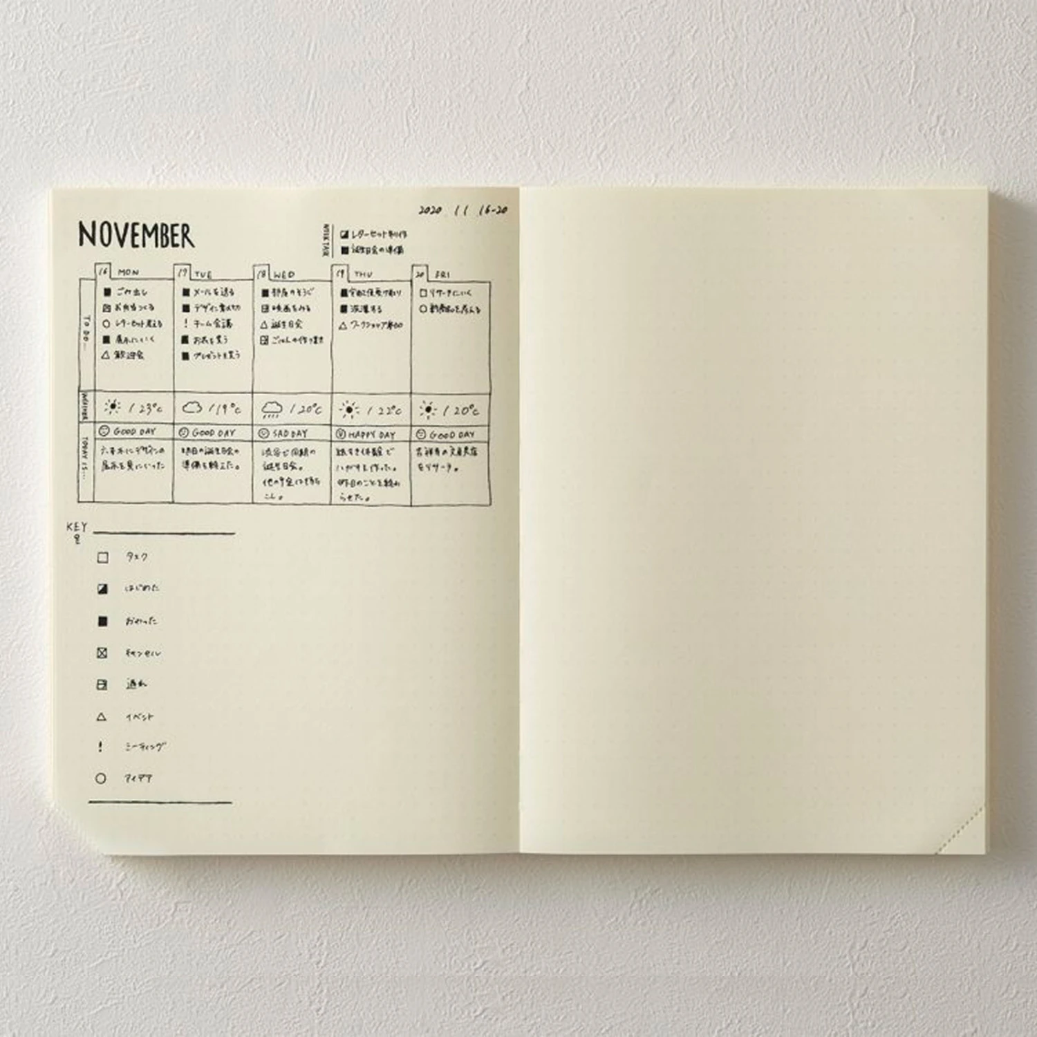 La particolare rilegatura Codex a vista consente al diario di aprirsi completamente in ogni pagina così da facilitare la scrittura in ogni giorno dell’anno. L’angolo di ogni pagina può essere strappato lungo una linea tratteggiata.
