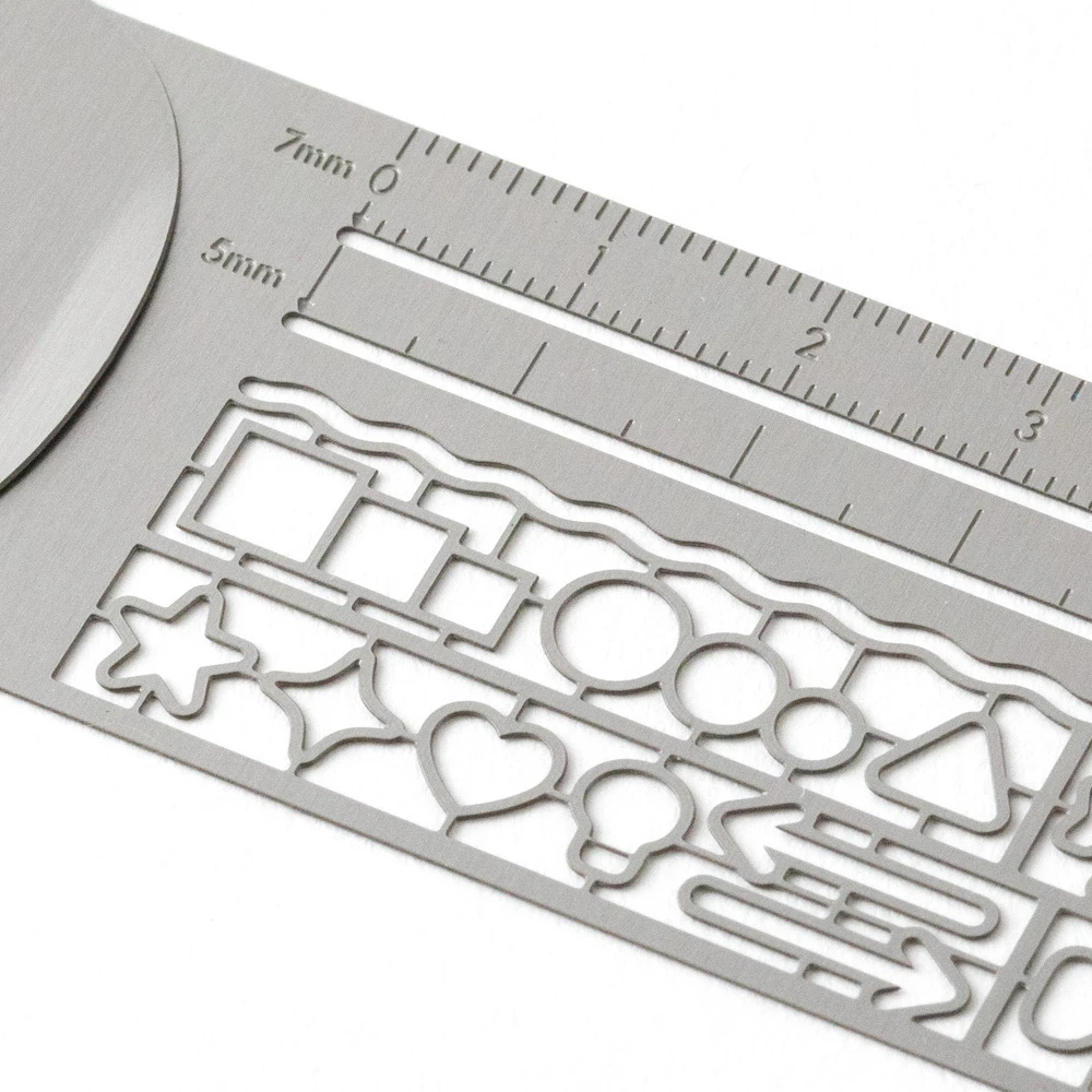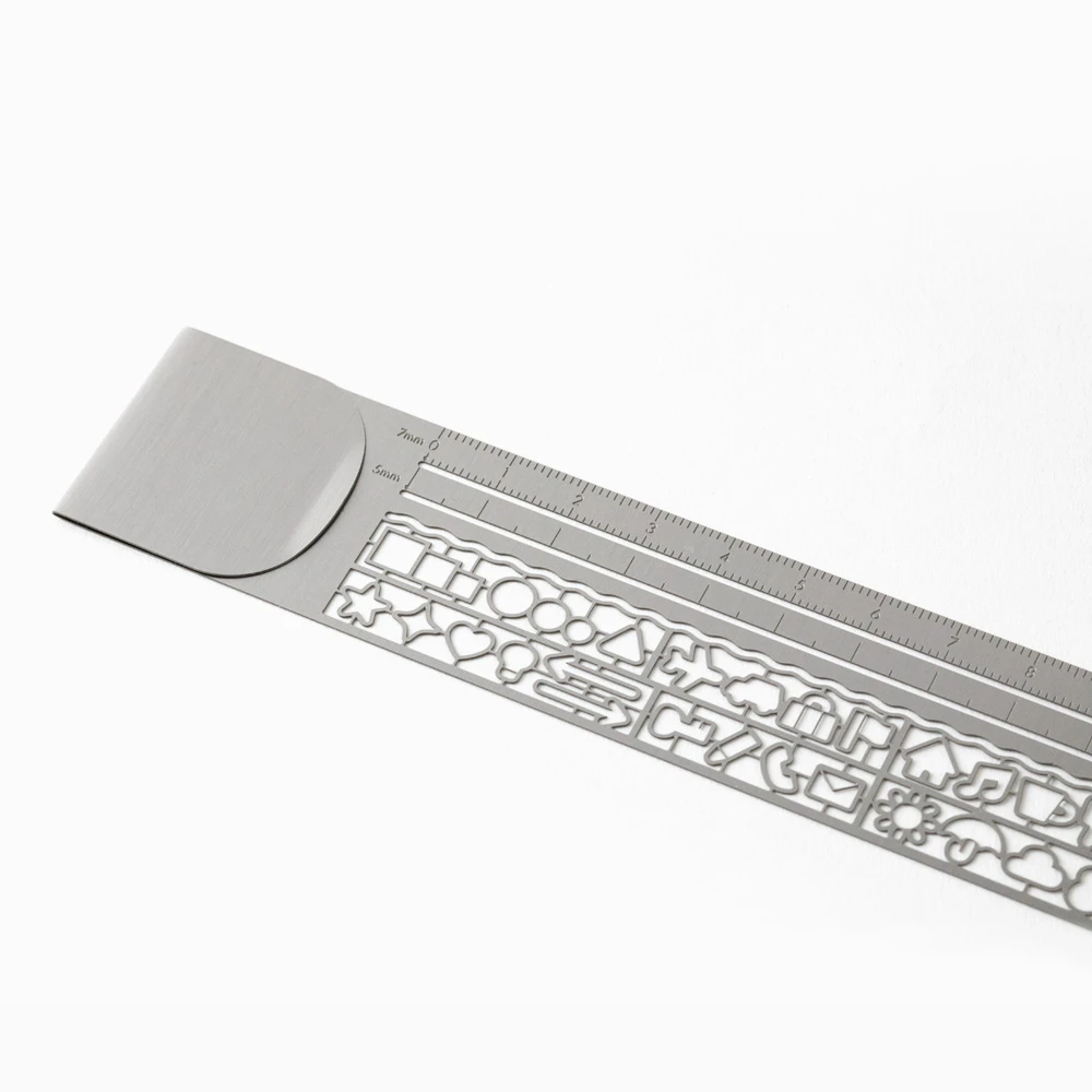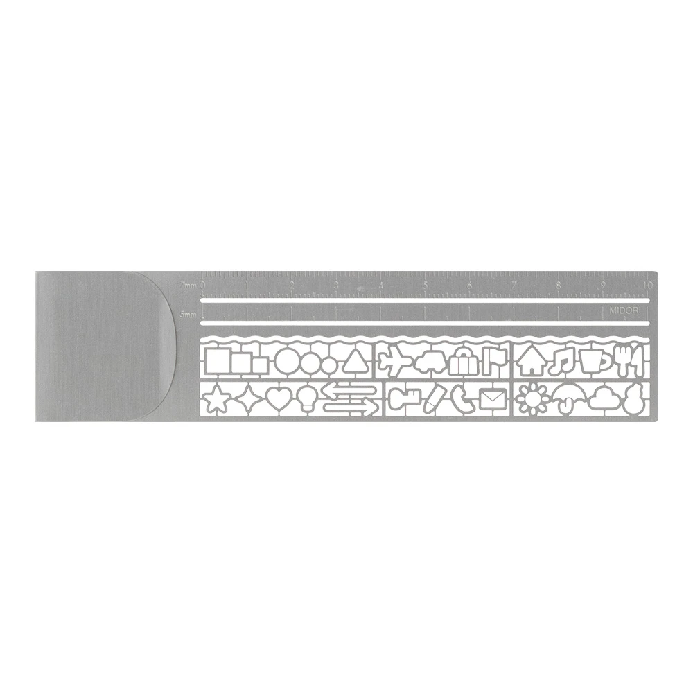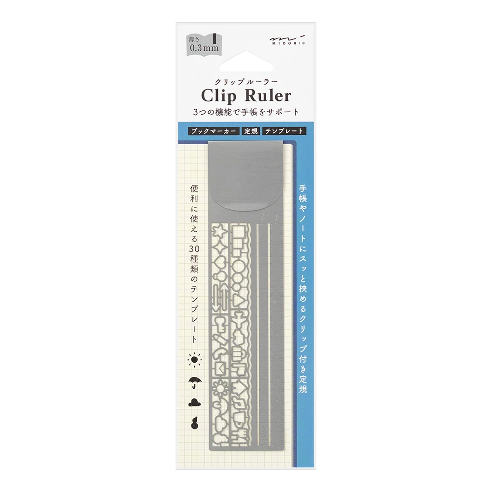 Midori Clip Ruler Argento è una clip, un righello, un segnalibro ed un normografo. Grazie al suo formato 140 mm x 34 mm ed il suo metallo sottile e flessibile, puoi tenerlo in un quaderno o un diario ed utilizzarlo all’occorrenza per decorare la tua agenda, il tuo notebook oppure per un utilizzo tecnico.