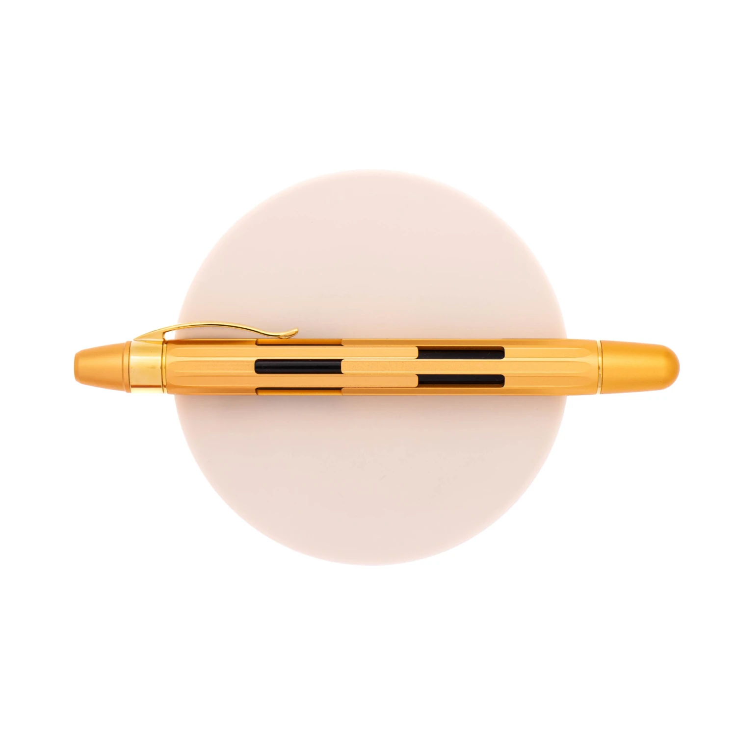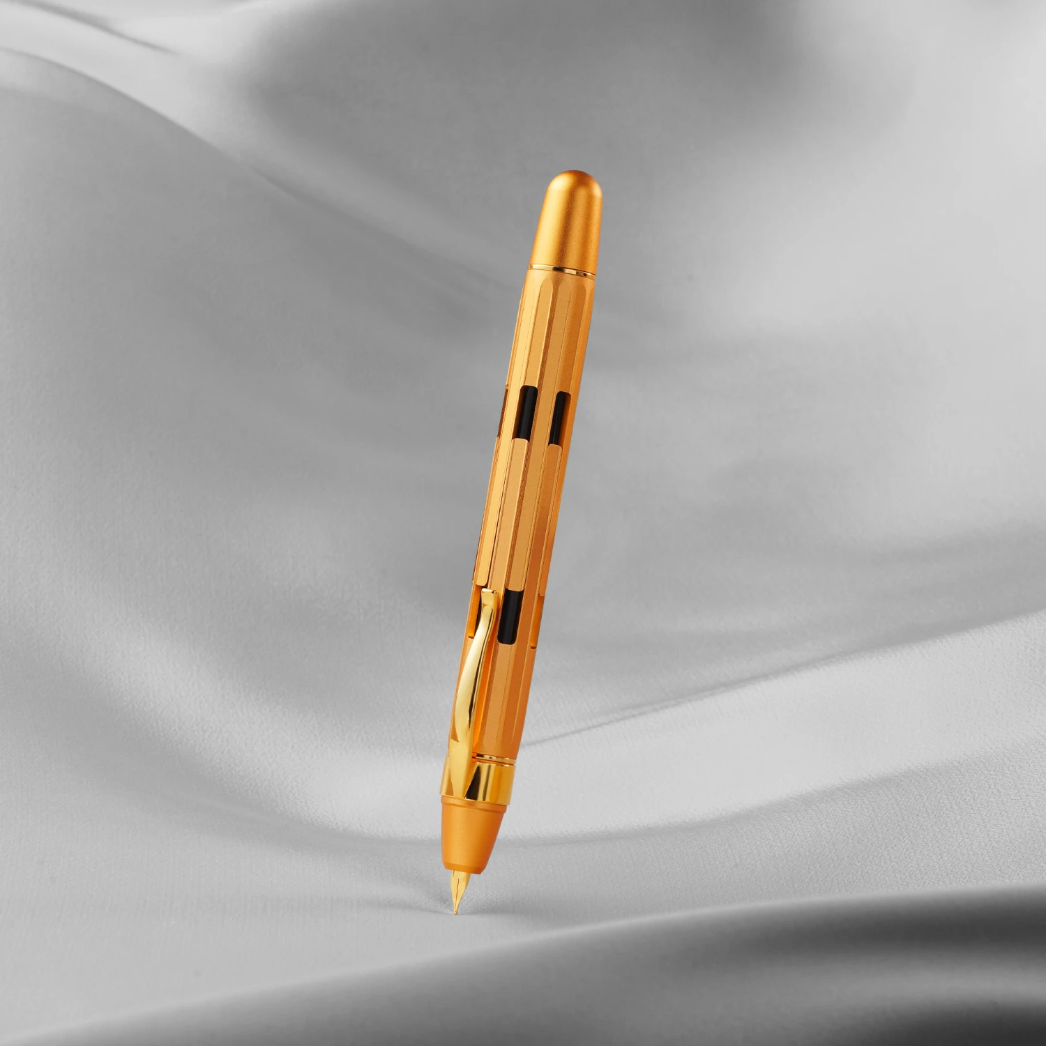 Nahvalur Eclipse Pure Gold presenta un corpo in alluminio oro con parti in metallo dorate. E’ equipaggiata di un pennino in acciaio e si ricarica tramite cartucce ad attacco standard internazionale. La clip rimovibile è studiata per offrire un’esperienza di scrittura confortevole, indipendentemente dalle preferenze. La forma sfaccettata assicura che, anche con la clip rimossa, non sia necessario alcun fermo per evitare il rotolamento su superfici piane.