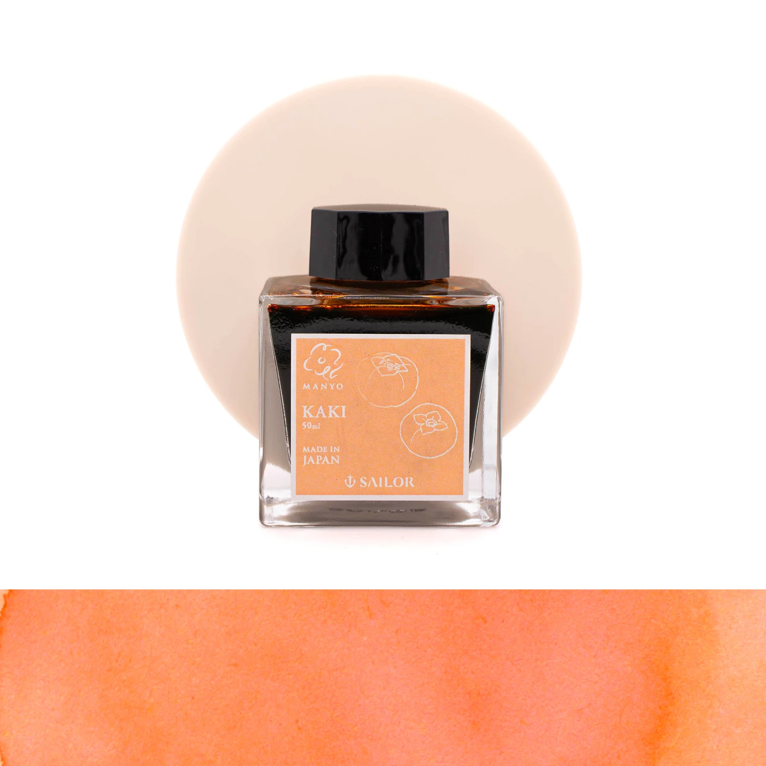 Durante l’era Heian i cachi veniva consumati maturi oppure essiccati. Questo inchiostro Sailor Manyo in edizione limitata trae ispirazione dall’arancione del frutto cachi.