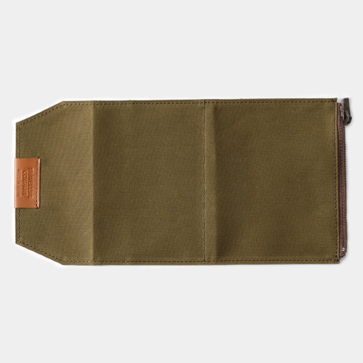 Ottieni ancora di più dal tuo Traveler’s Notebook: posiziona questa tasca in cotone con cerniera nel tuo taccuino e usala come luogo sicuro per biglietti o carte, come astuccio o come portafoglio.