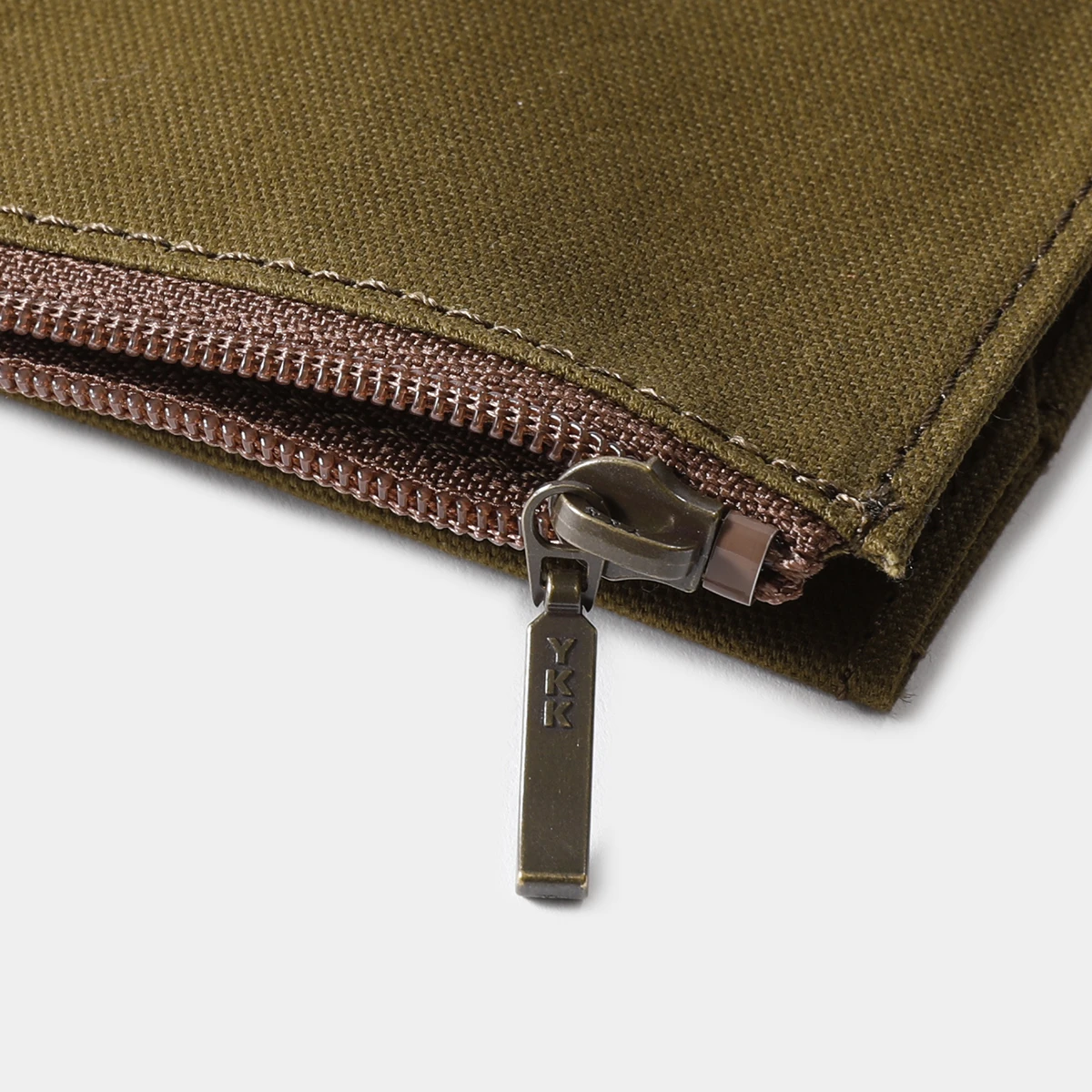 La tasca Traveler’s Factory Cotton Zipper Case Passport Size Olive è realizzata da artigiani nella periferia di Tokyo con tessuto cerato alla paraffina prodotto localmente. La texture cambia con l’uso, assumendo sempre più carattere.