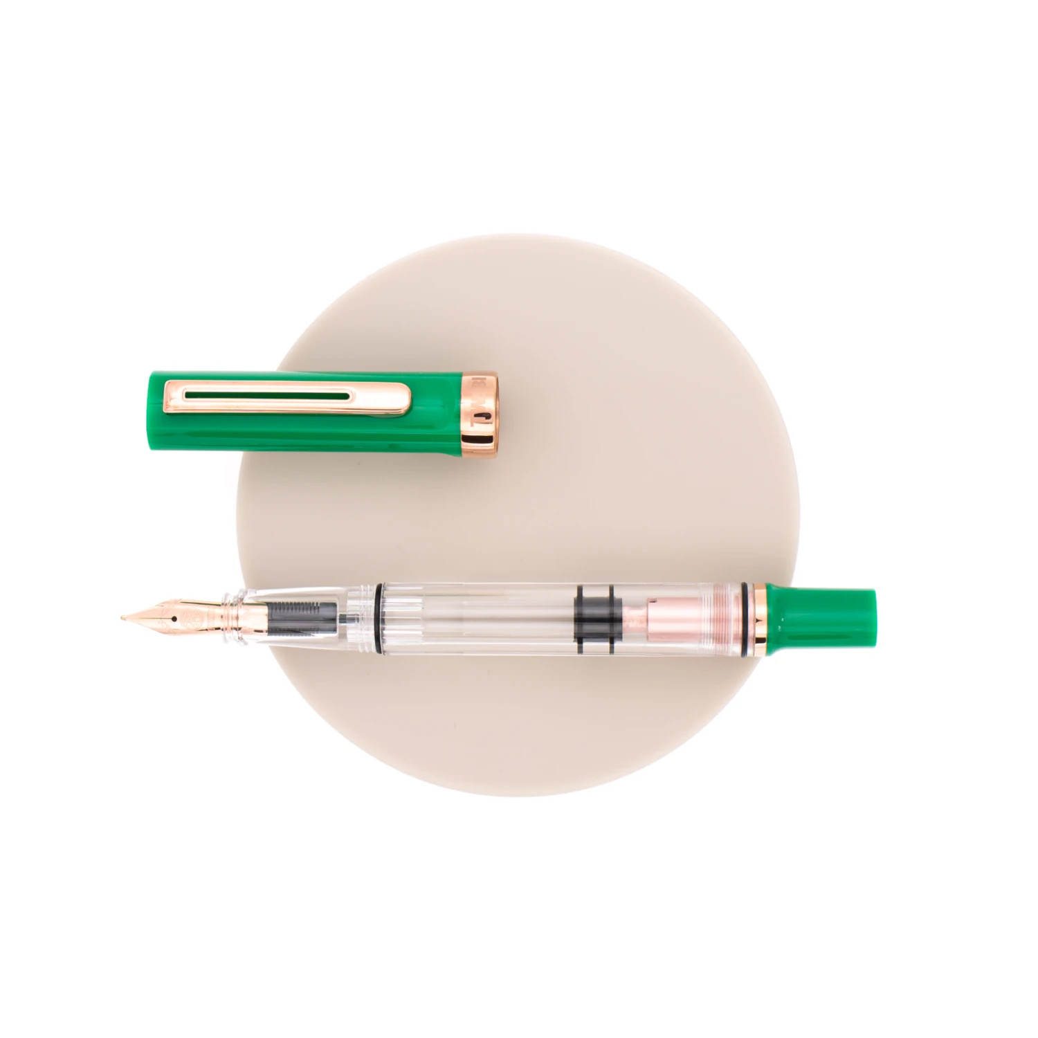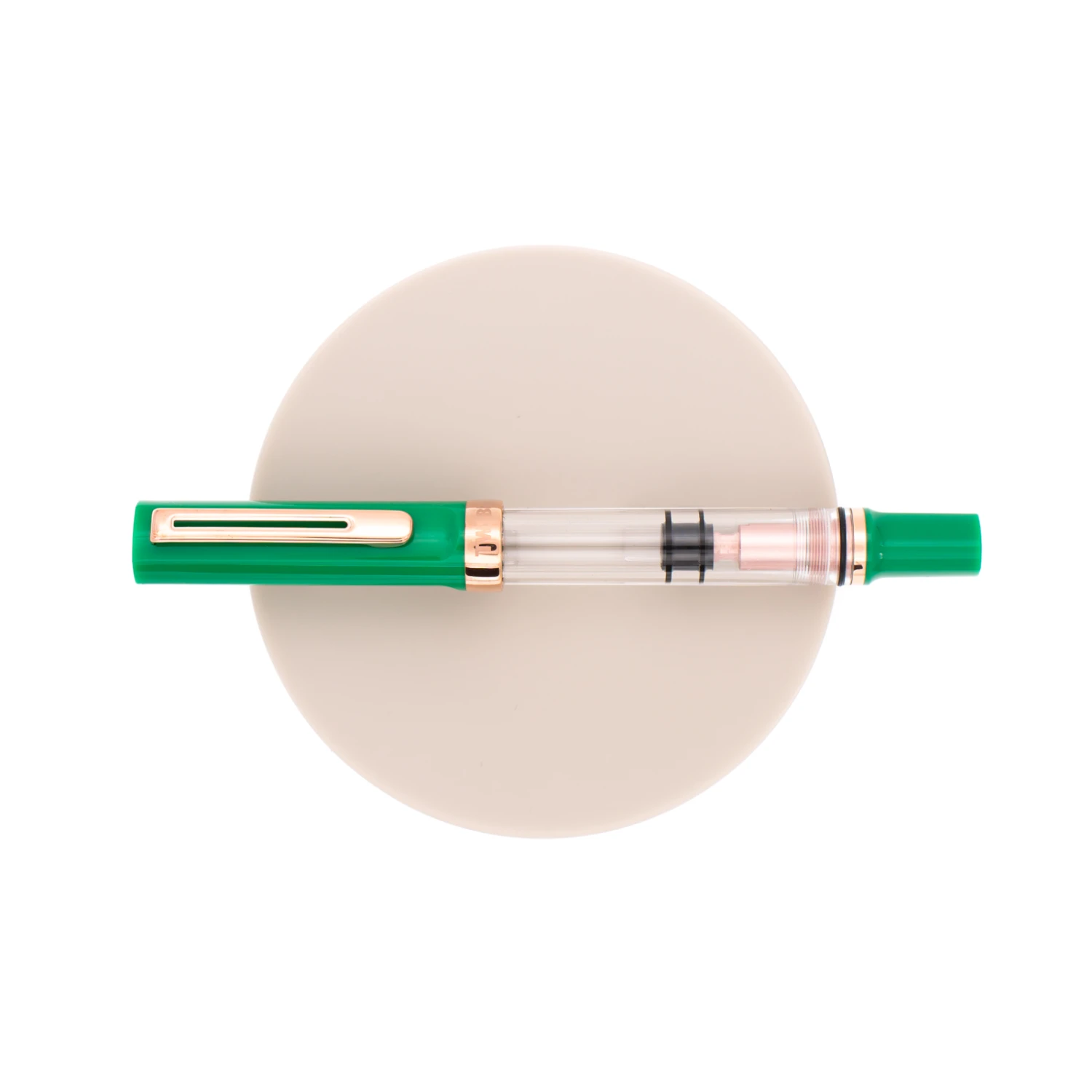 Questo set contiene una Twsbi Eco-T Royal Jade, realizzata con resina giada e finiture oro rosa, ed un inchiostro Twsbi Midnight Blue da 18 ml. Pennino in acciaio e sistema di caricamento a stantuffo realizzato in alluminio.