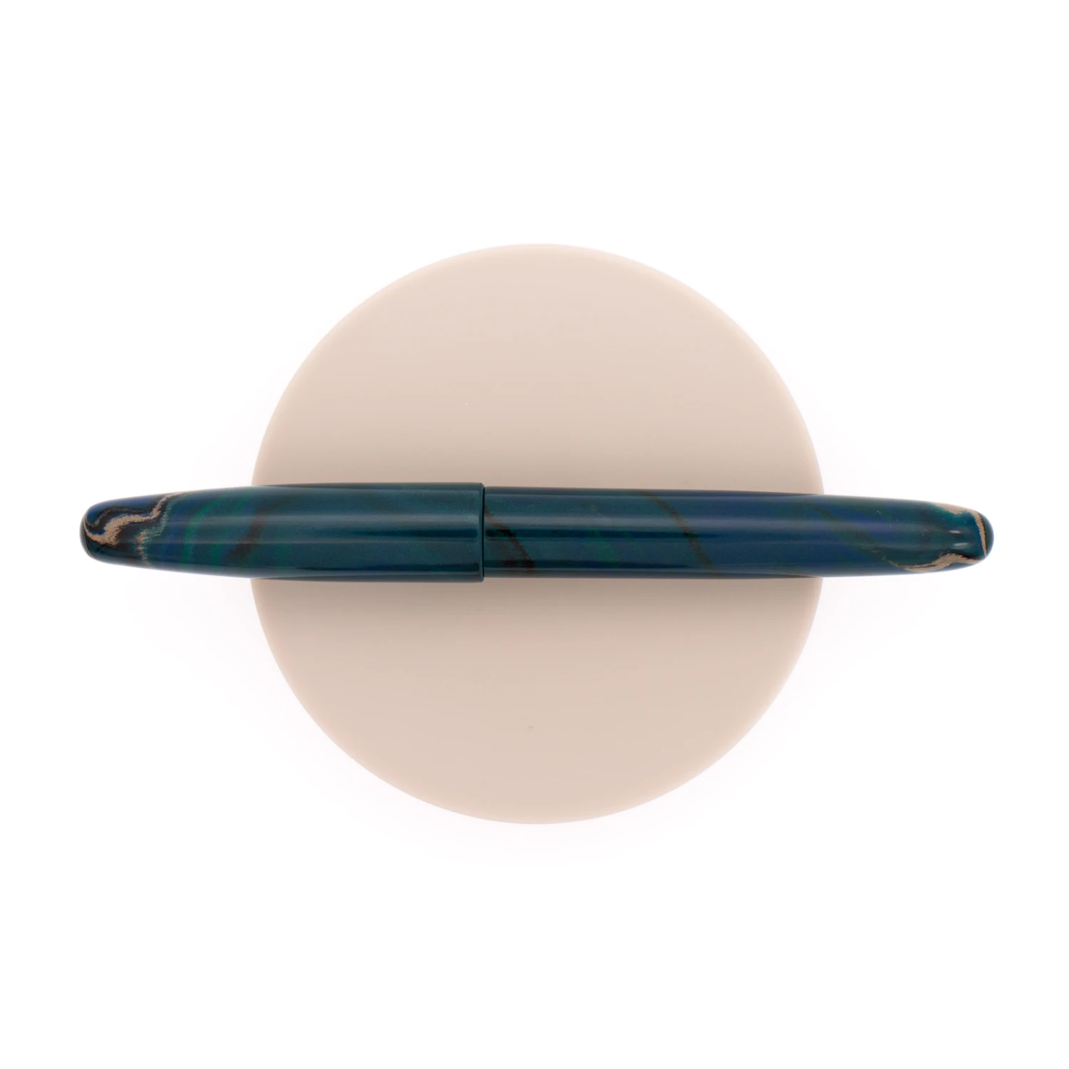 Wancher Dream Pen True Ebonite Marble Green & Rodio è realizzata in ebanite petrolio con finiture rodiate. Presenta un design minimal Giapponese senza nessun elemento aggiuntivo, come clip ed anelli metallici, ed è equipaggiata di un pennino in acciaio JoWo #6.
